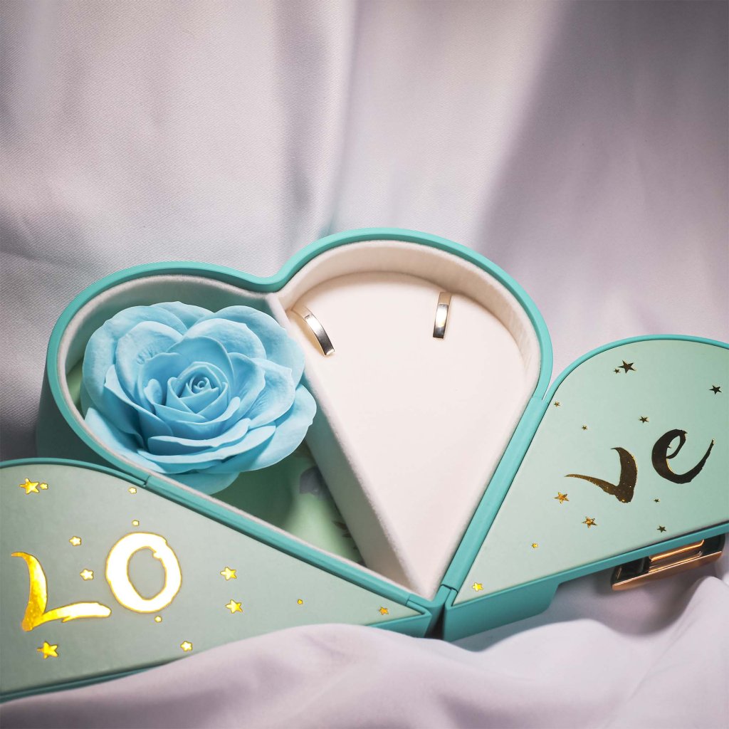 Díky svému designu se stane nejen krásným obalem, ale i vzpomínkovou šperkovnicí. Krabička vypadá romanticky, což ji činí ideální volbou pro darování k příležitostem jako Valentýn, výročí. Krabička obsahuje praktickou přihrádku určenou k uložení šperků – například náhrdelníku, prstýnků nebo náušnic. Uvnitř krabičky se nachází něžná růžička, která dodává celému balení jedinečný a luxusní nádech.