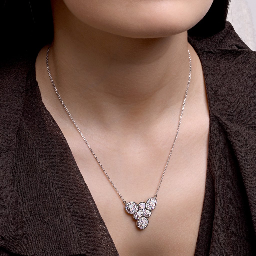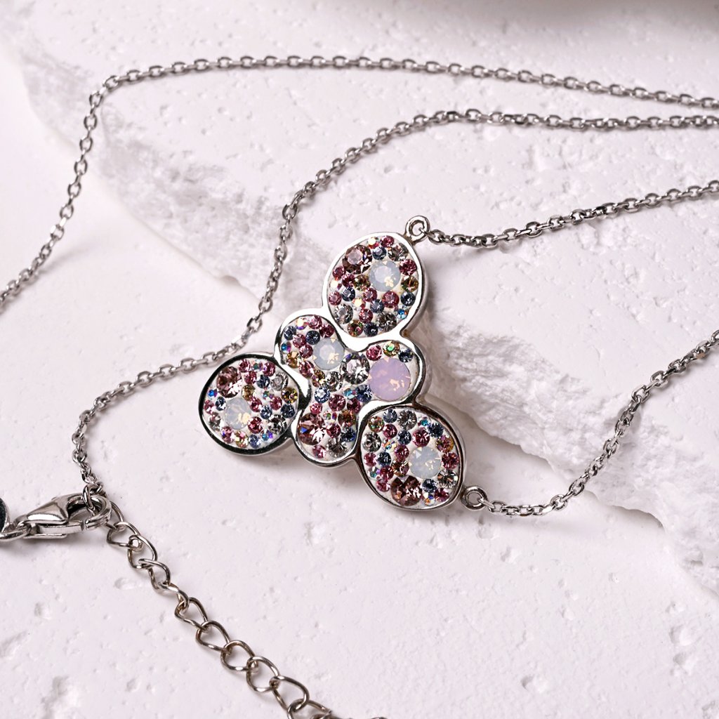 Nepřehlédnutelný náhrdelník, jehož dominantou je velký přívěsek se Swarovski krystaly v barvách magic rose, který zaujmou svým leskem. Skvěle se hodí k večernímu outfitu.