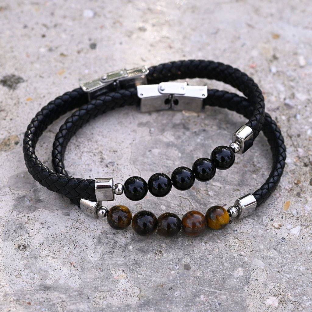 Kožený pánský náramek 43086.3 tygří oko 21 cm