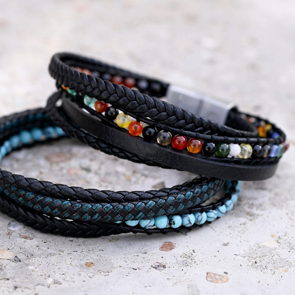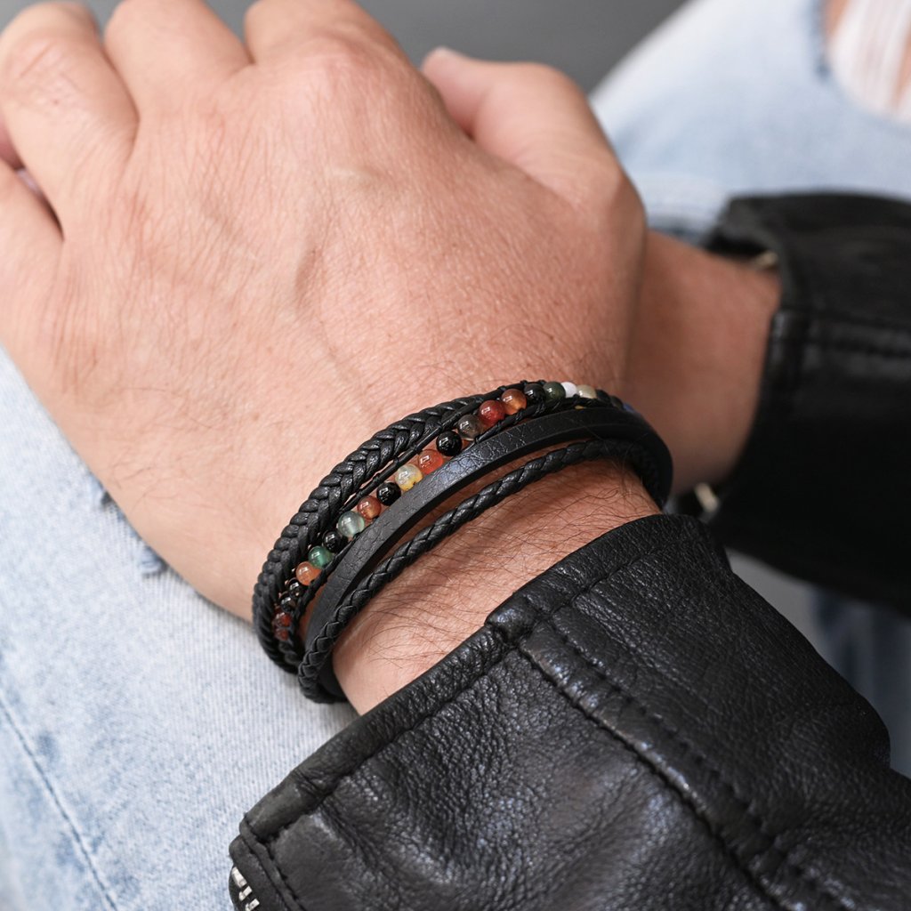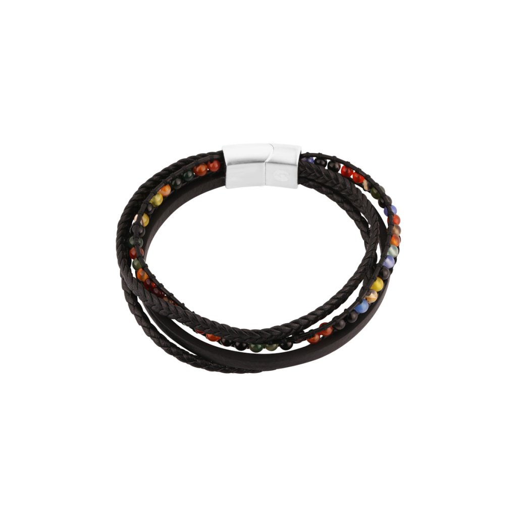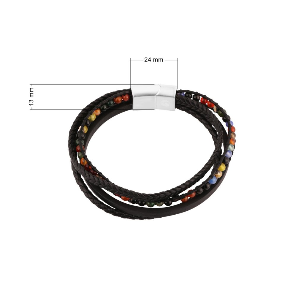 Kožený pánský náramek s barevnými korálky 43087.3 21 cm
