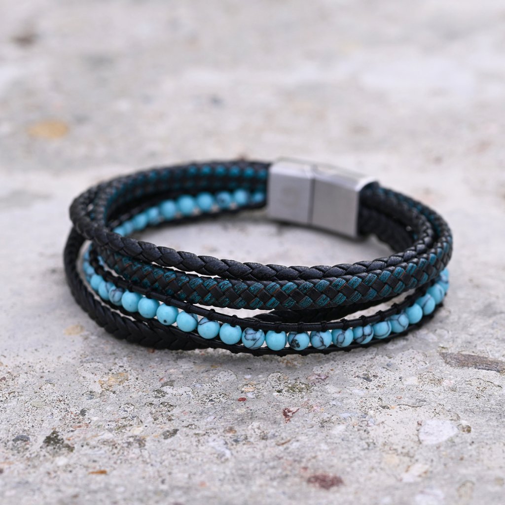 Kožený pánský náramek tyrkysové korálky 43087.3