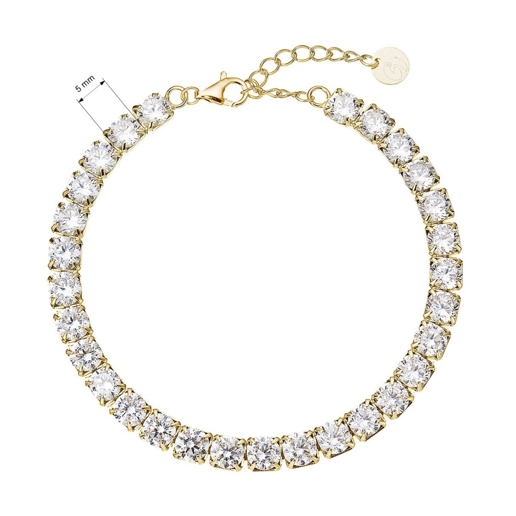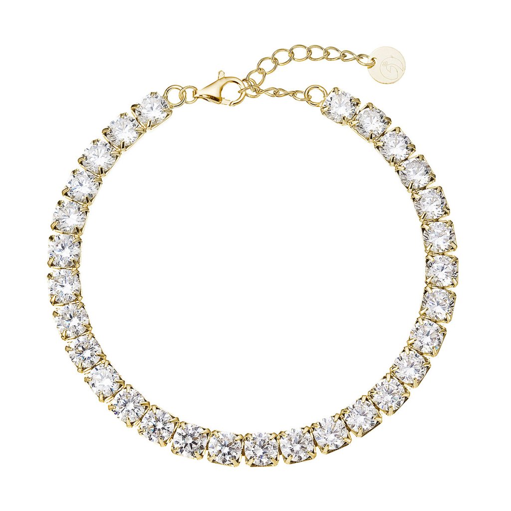 Luxusní tenisový náramek z pozlaceného stříbra osazený zářivými zirkony představuje šperk, který si říká o pozornost. Jeho oslnivý lesk a precizní zpracování z něj činí výjimečný doplněk pro slavnostní události i jako dar s velkým významem. Každý zirkon je dokonale broušený, výrazný a nepřehlédnutelný. Díky nastavitelné délce perfektně padne na každé zápěstí. Třpytivé zirkony o velikosti 5 mm jsou vsazené do zlaceného stříbra ryzosti 925/1000.
