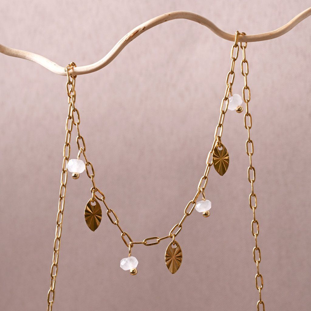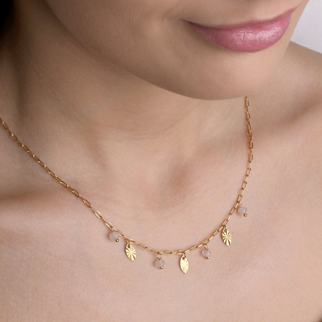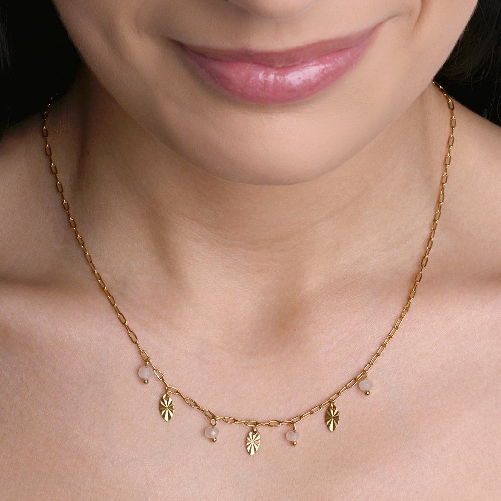 Náhrdelník ocelový s bílým jadeitem 42026.1