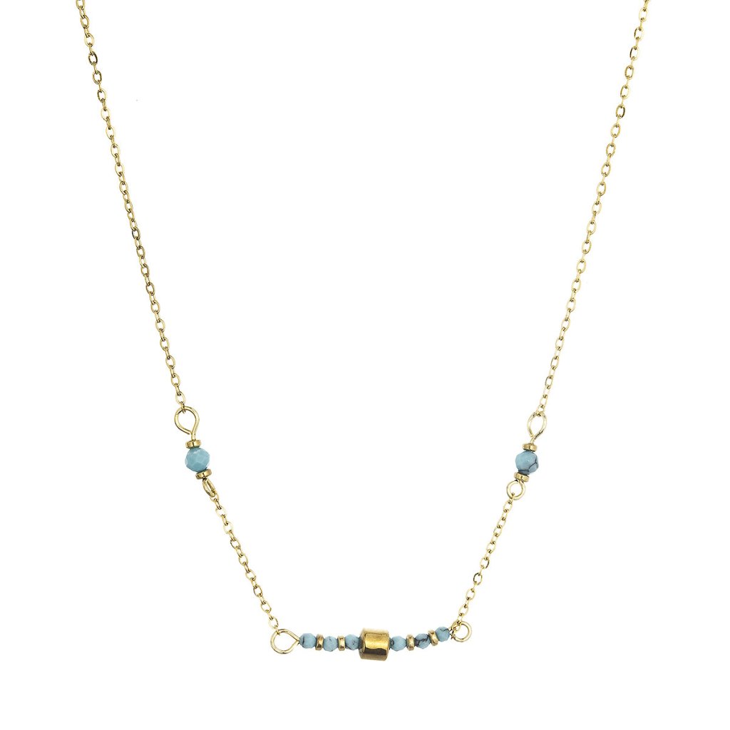 Náhrdelník ocelový s modrým tyrkysem 42035.3