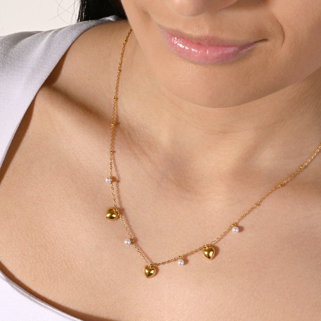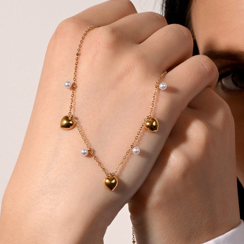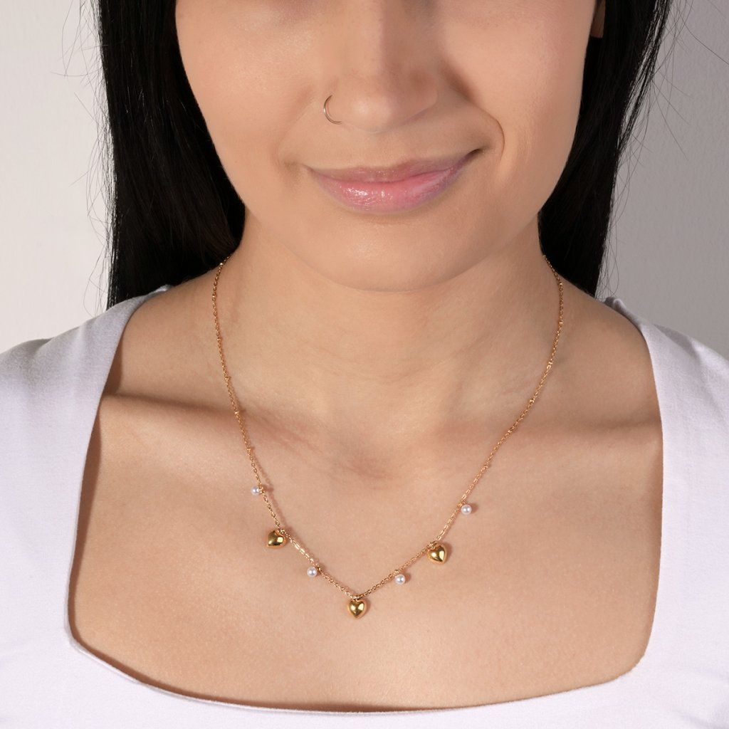 Náhrdelník ocelový s perličkami a srdíčky 42023.1