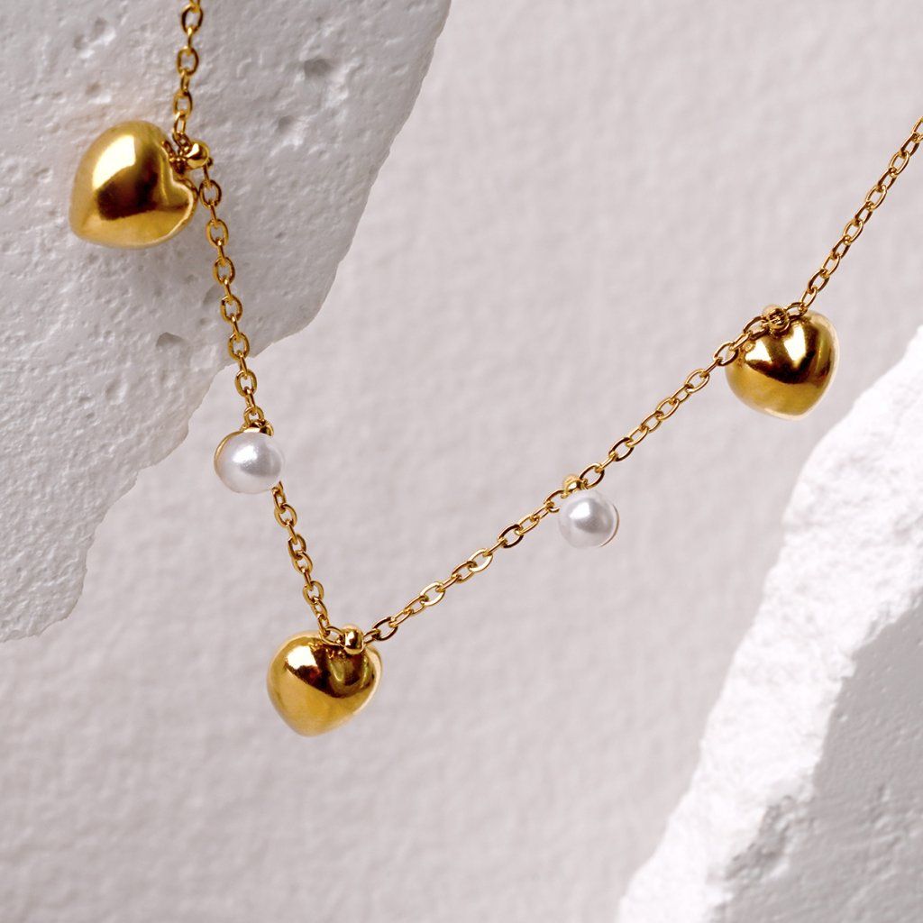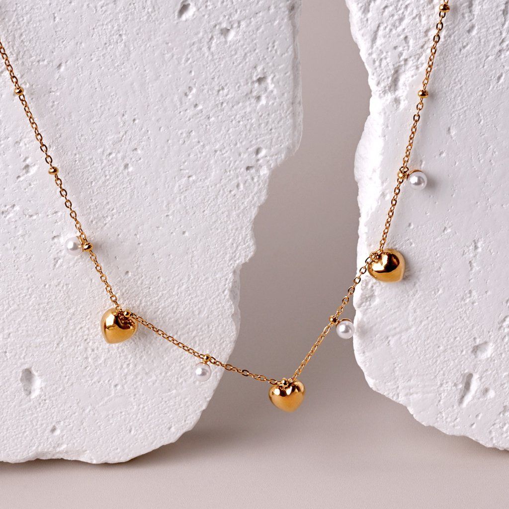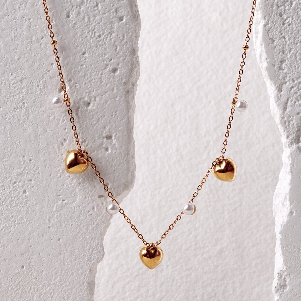 Náhrdelník ocelový s perličkami a srdíčky 42023.1