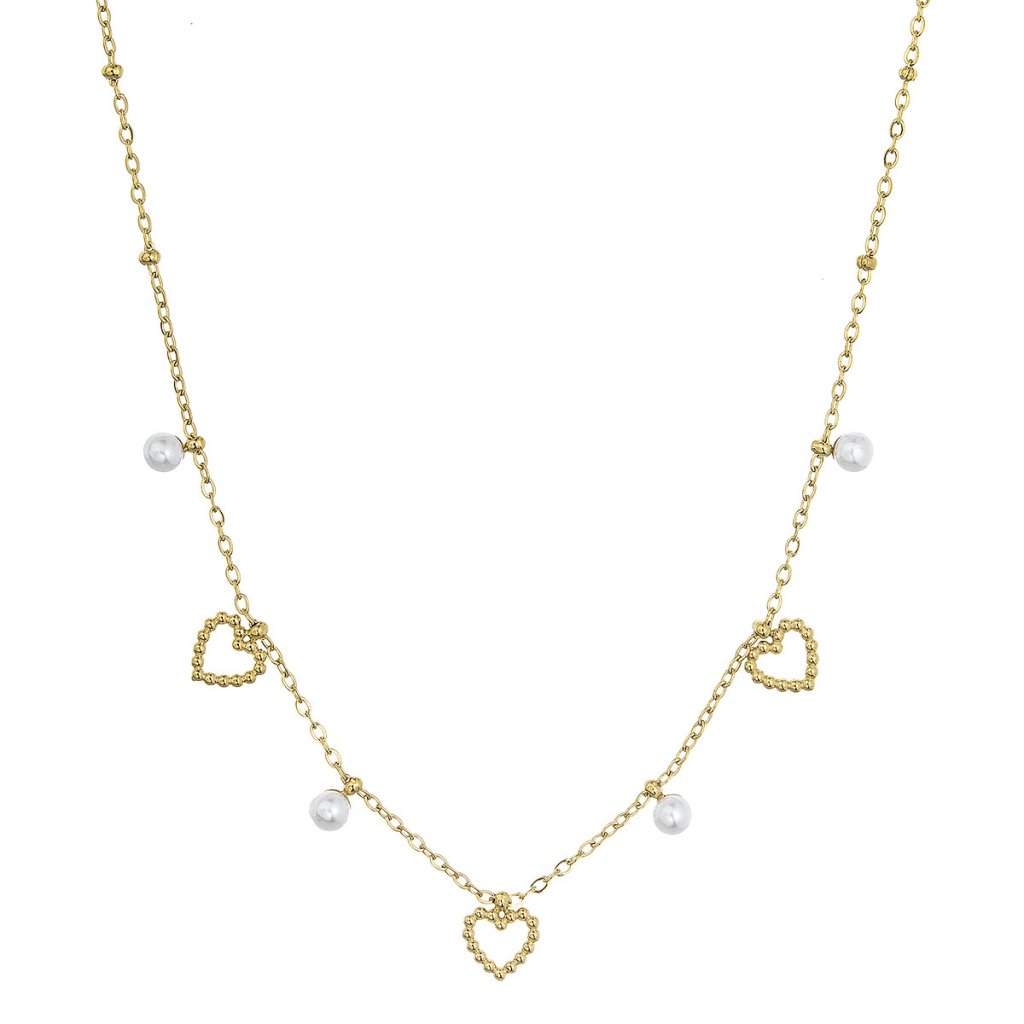 Náhrdelník ocelový s perličkami a srdíčky 42024.1