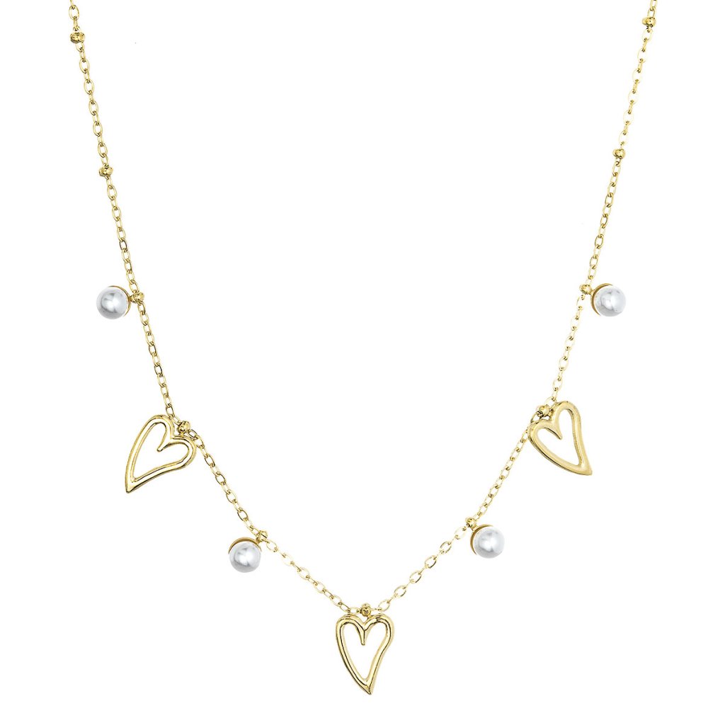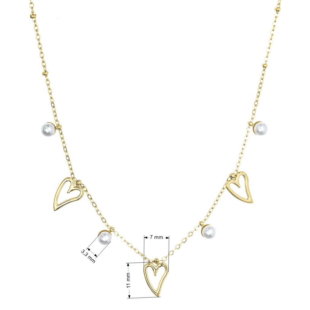 Náhrdelník ocelový s perličkami a srdíčky 42025.1