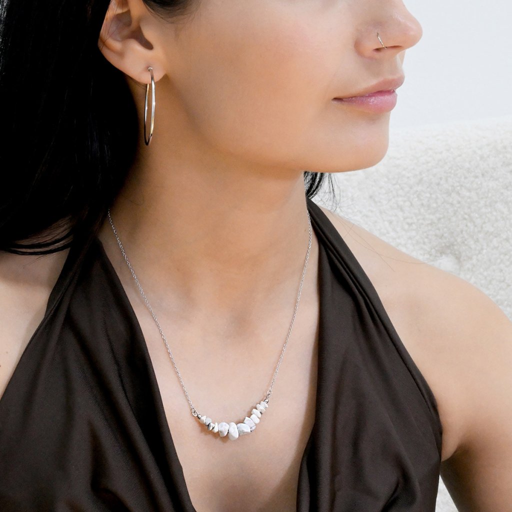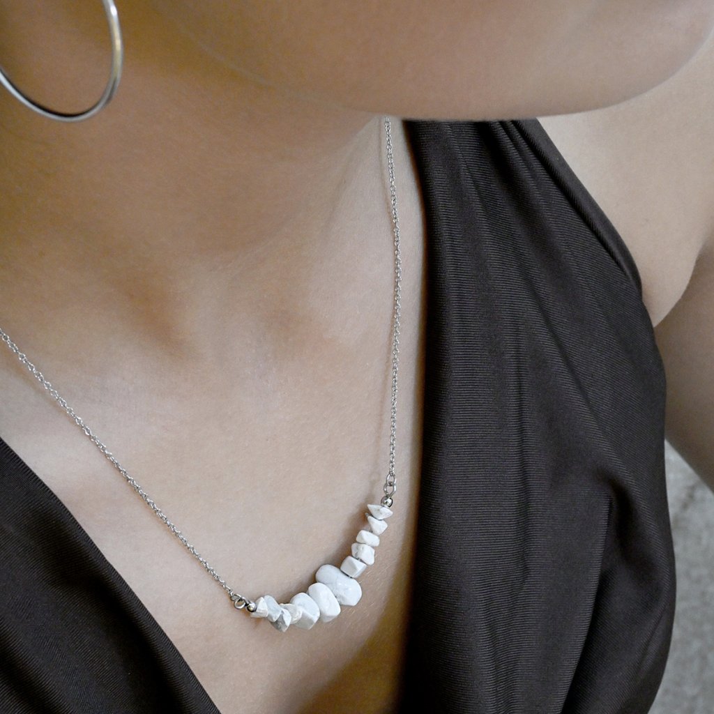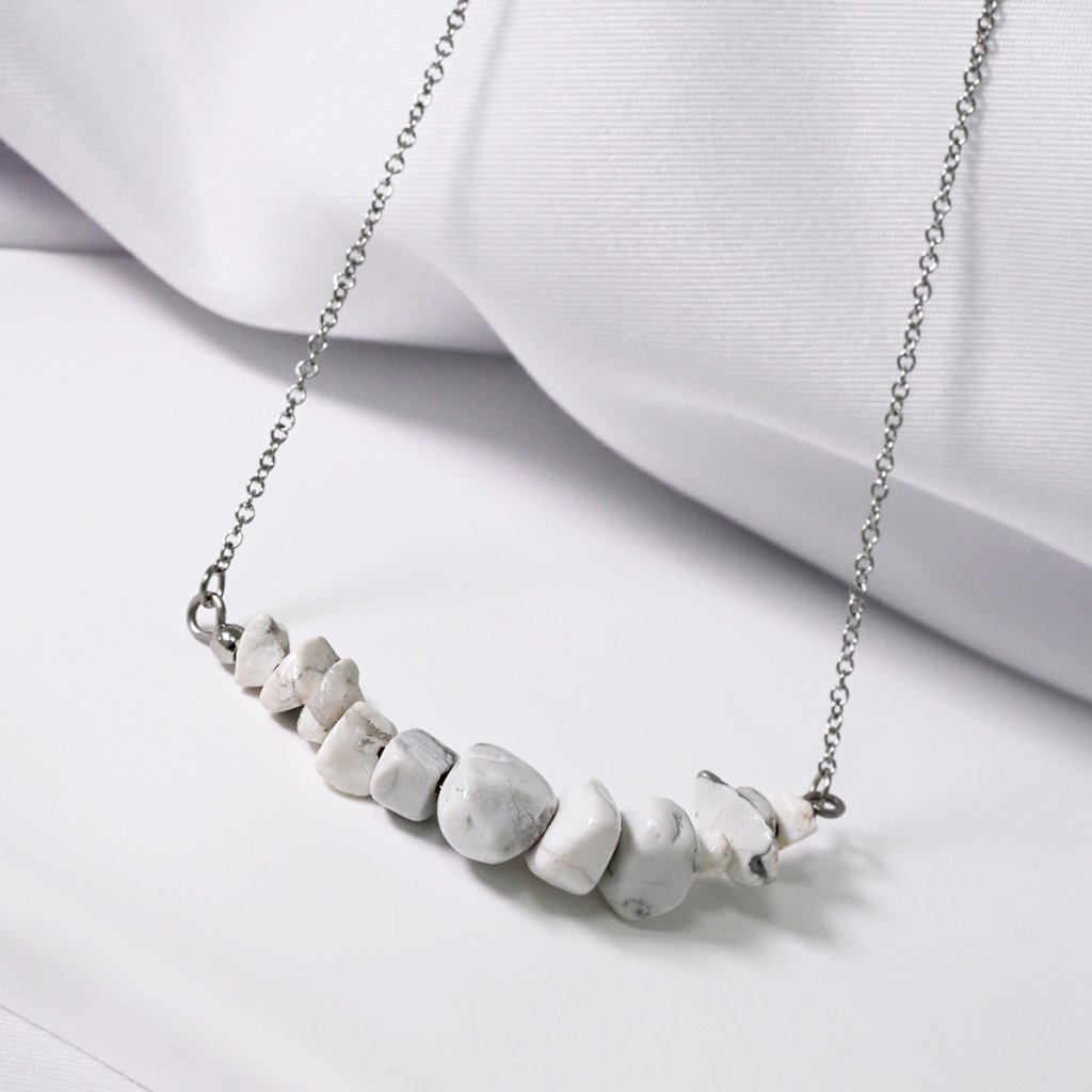 Náhrdelník s kamenem bílý howlit 42037.1 ocel