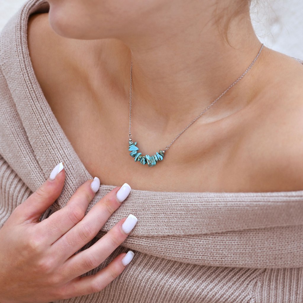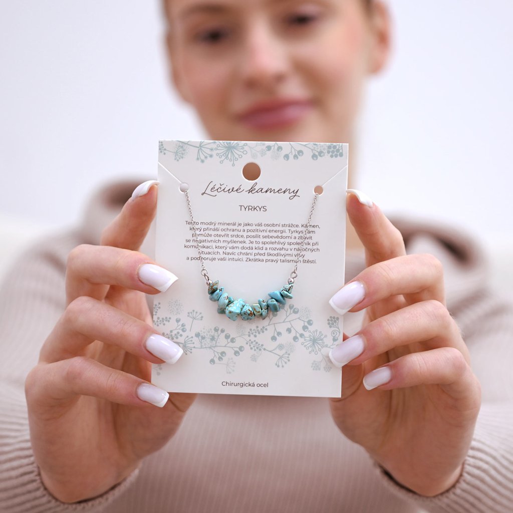 Náhrdelník s kamenem tyrkys 42037.3 ocel
