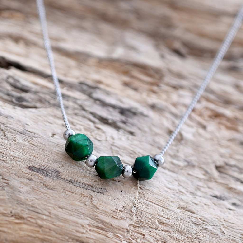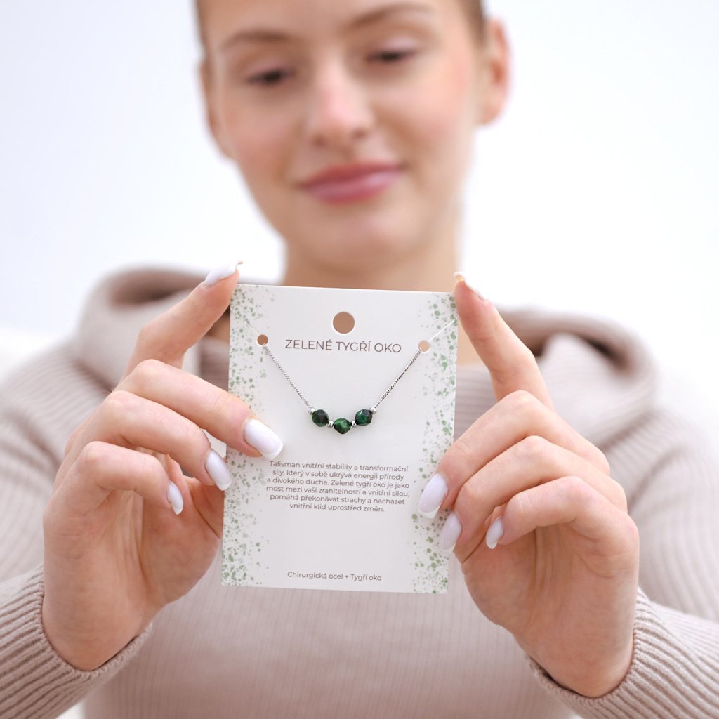 Náhrdelník zelené tygří oko 42036.3 ocel