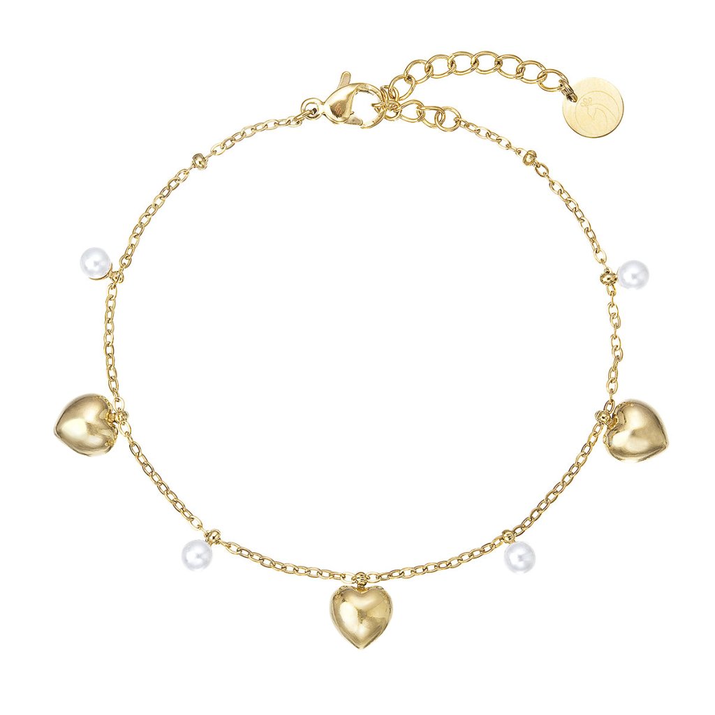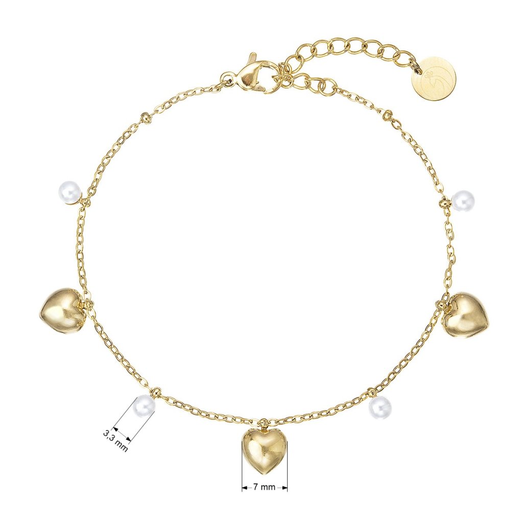 Náramek ocelový s perličkami a srdíčky 43060.1