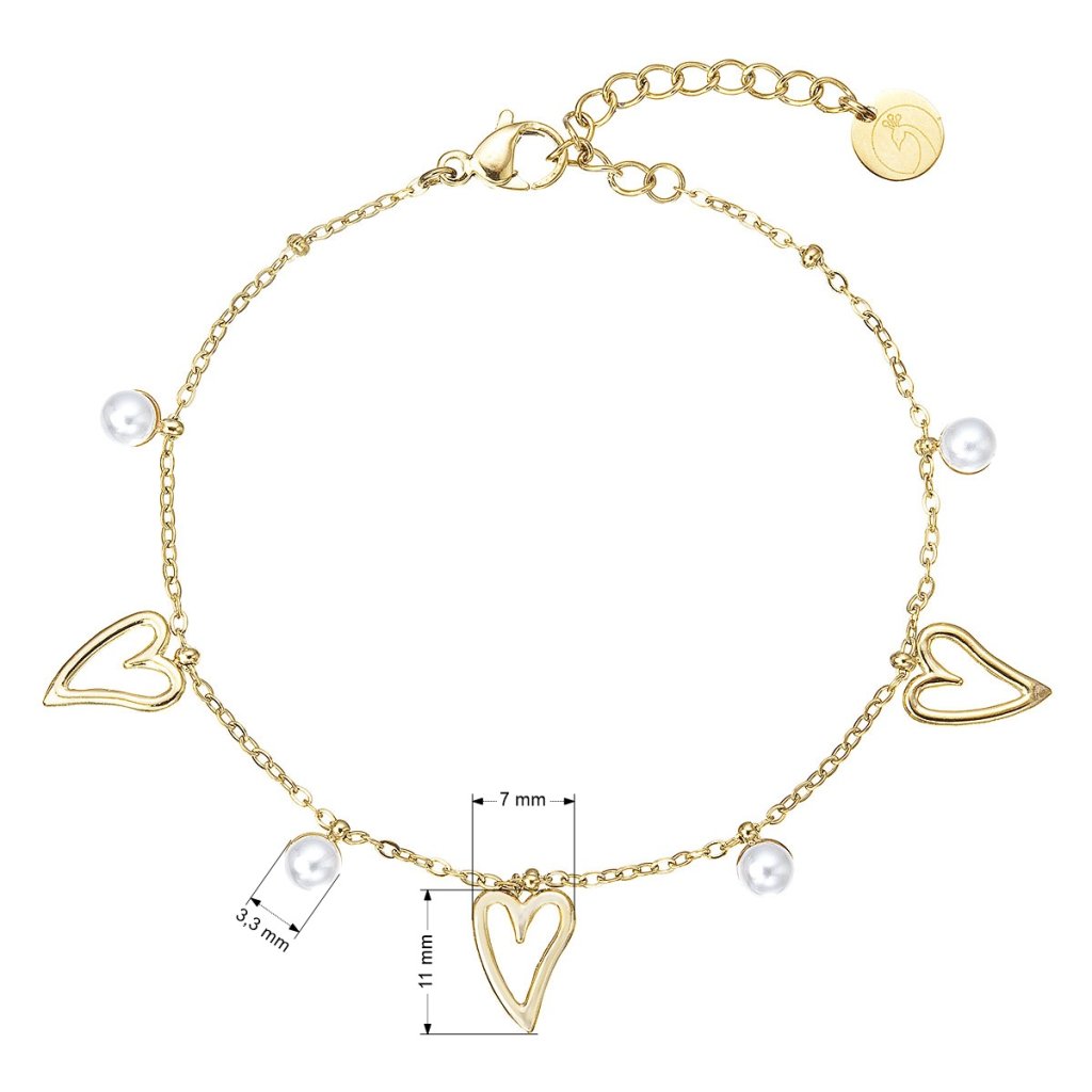 Náramek ocelový s perličkami a srdíčky 43062.1