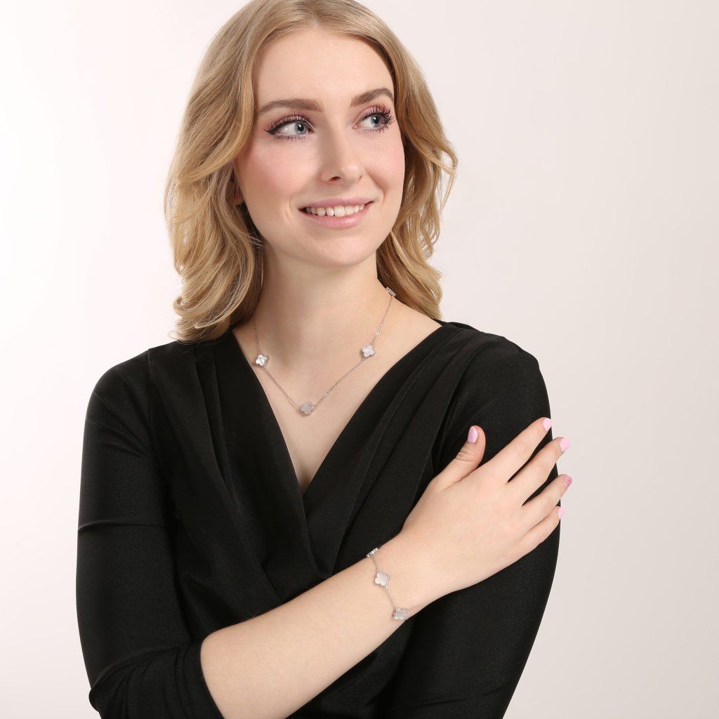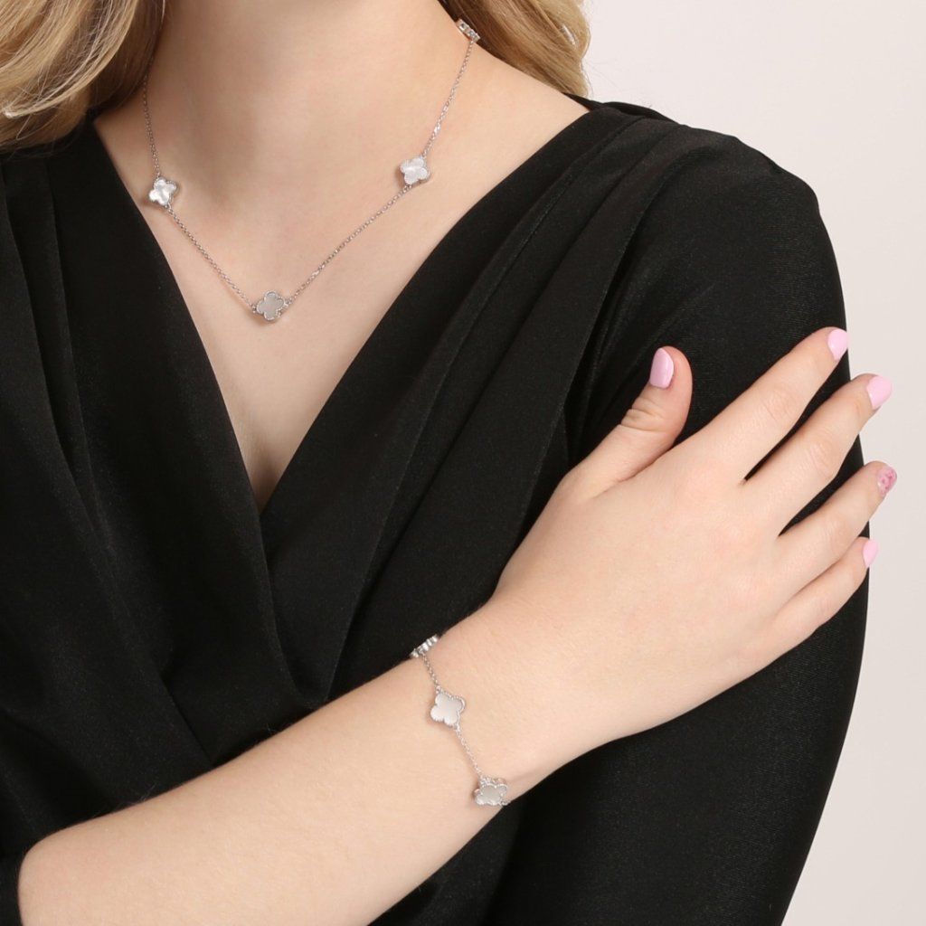 Stříbrný náramek perleťové čtyřlístky 13089.1