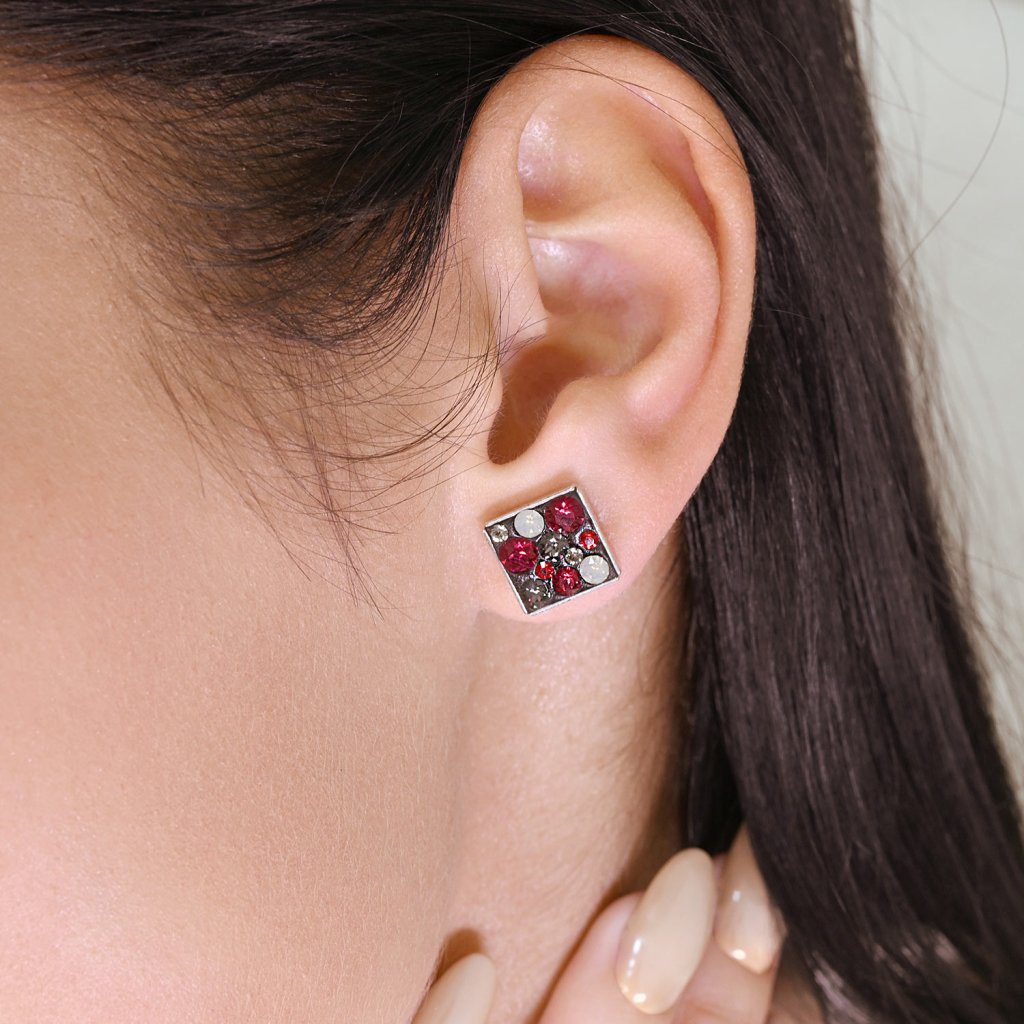 Náušnice bižuterie se Swarovski krystaly červené kosočtverec 51032.3 ruby
