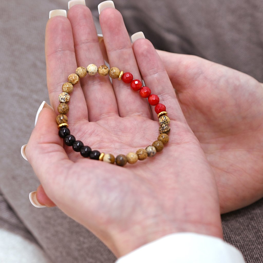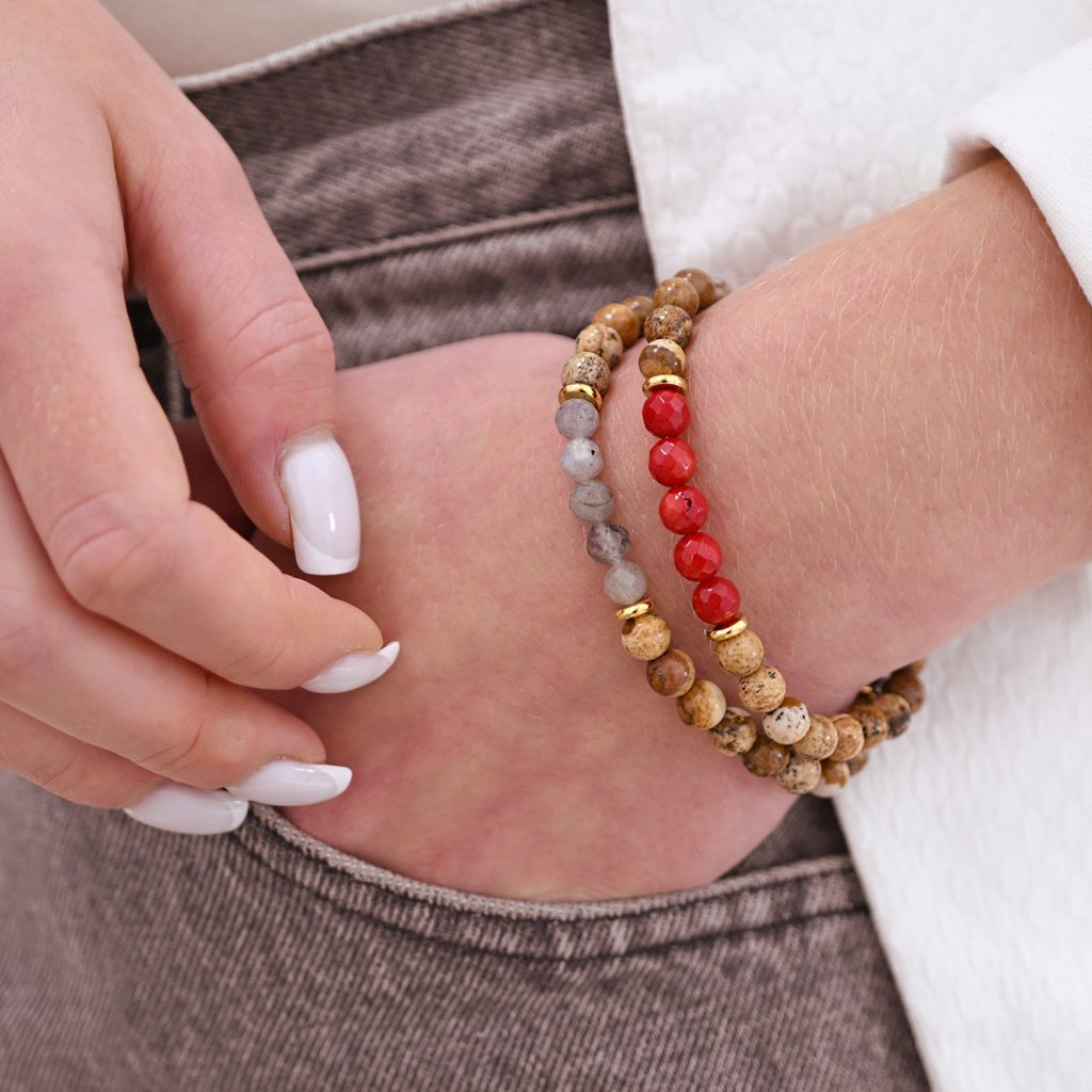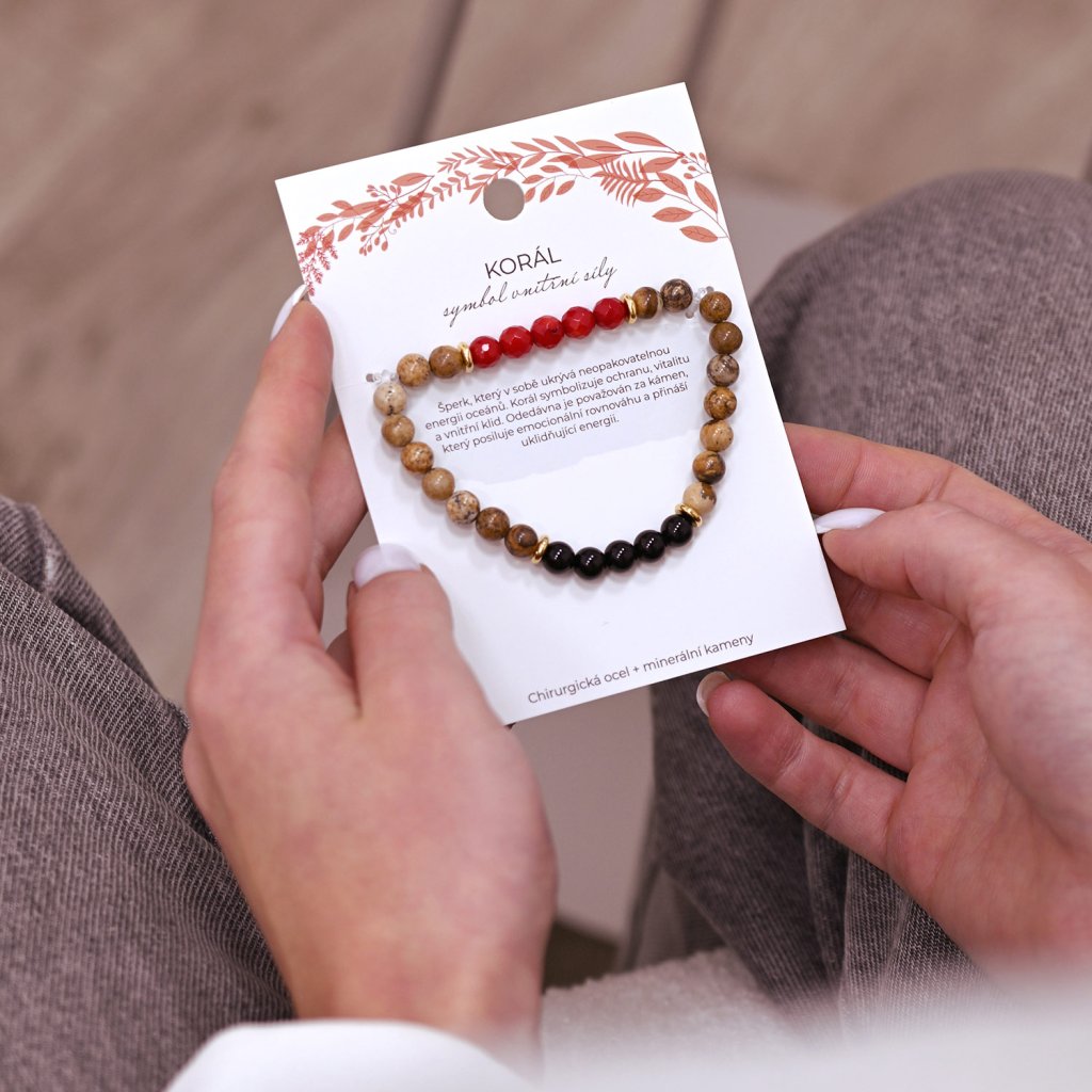 Ocelový náramek s minerálními kameny achát, jaspis, korál 43080.3
