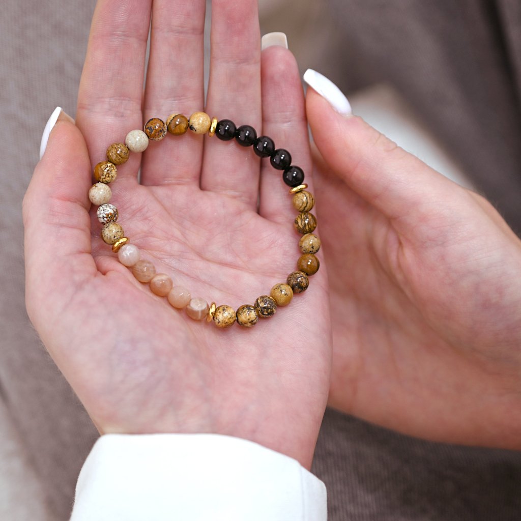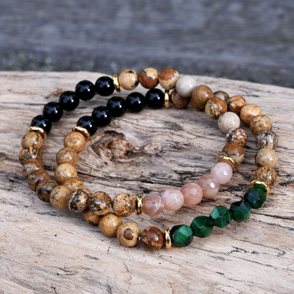 Ocelový náramek s minerálními kameny achát, jaspis 43080.3