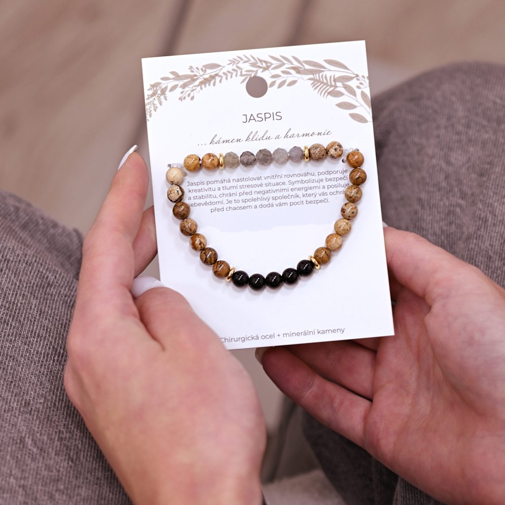 Barva kamene: černý achát, jaspis, silver leaf jaspis