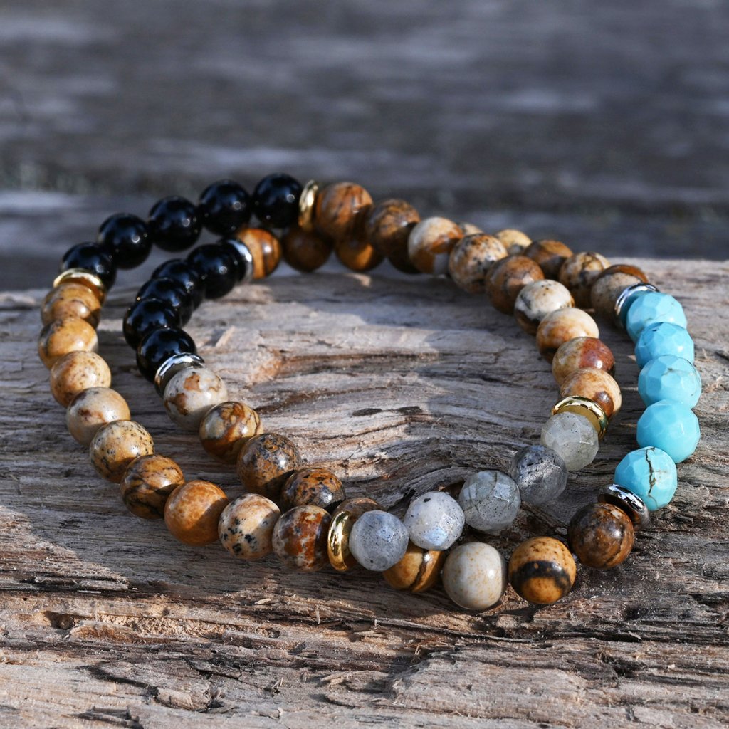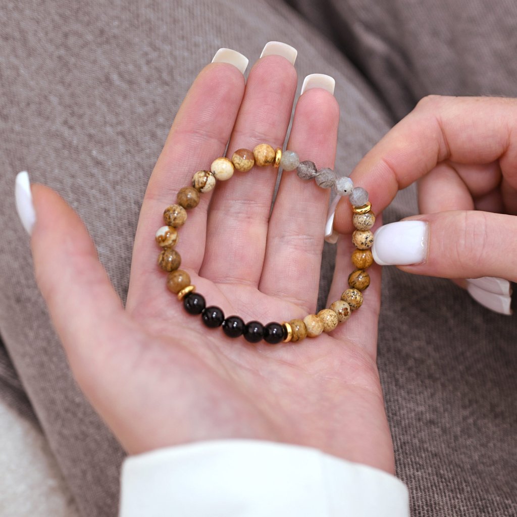 Ocelový náramek s minerálními kameny achát, jaspis 43080.3
