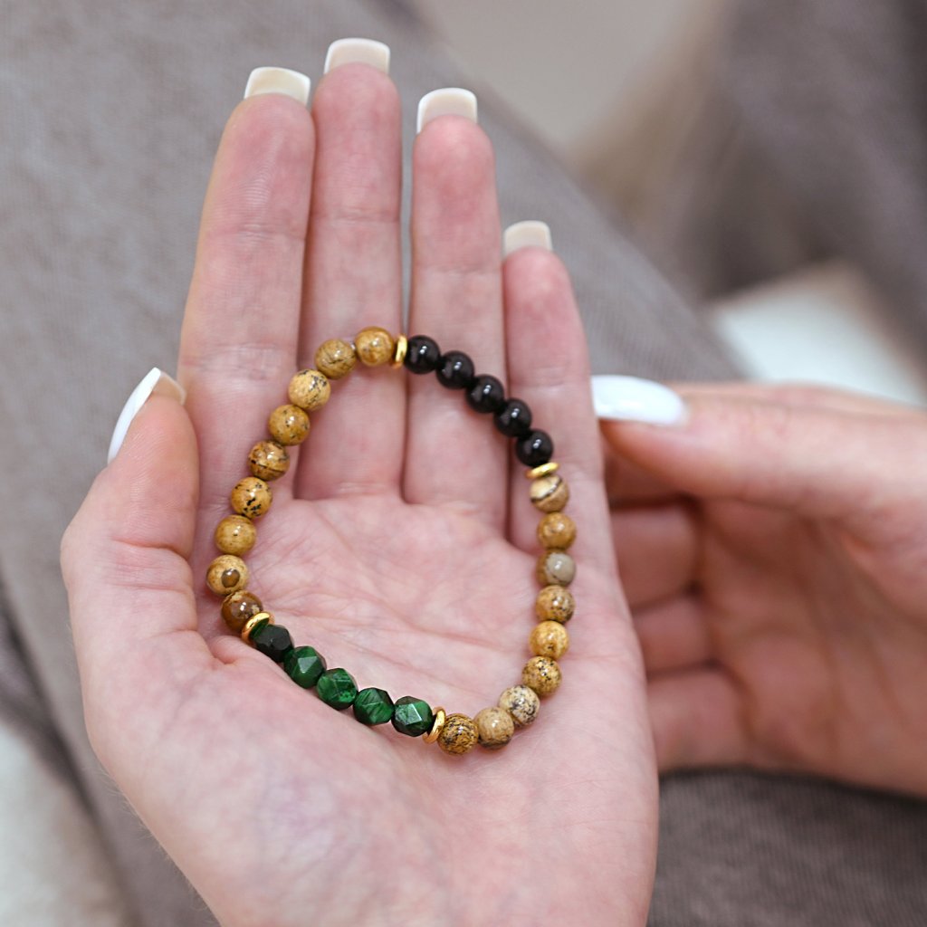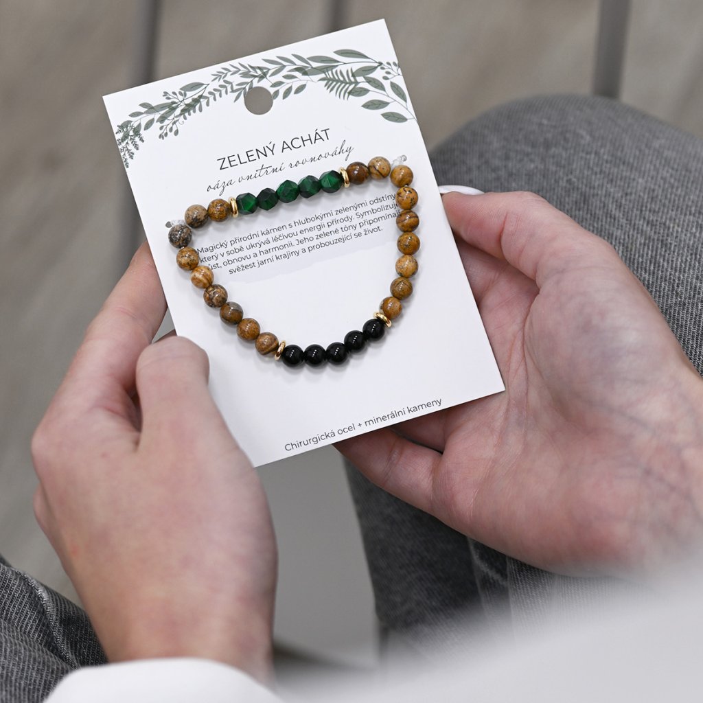 Ocelový náramek s minerálními kameny achát, jaspis 43080.3