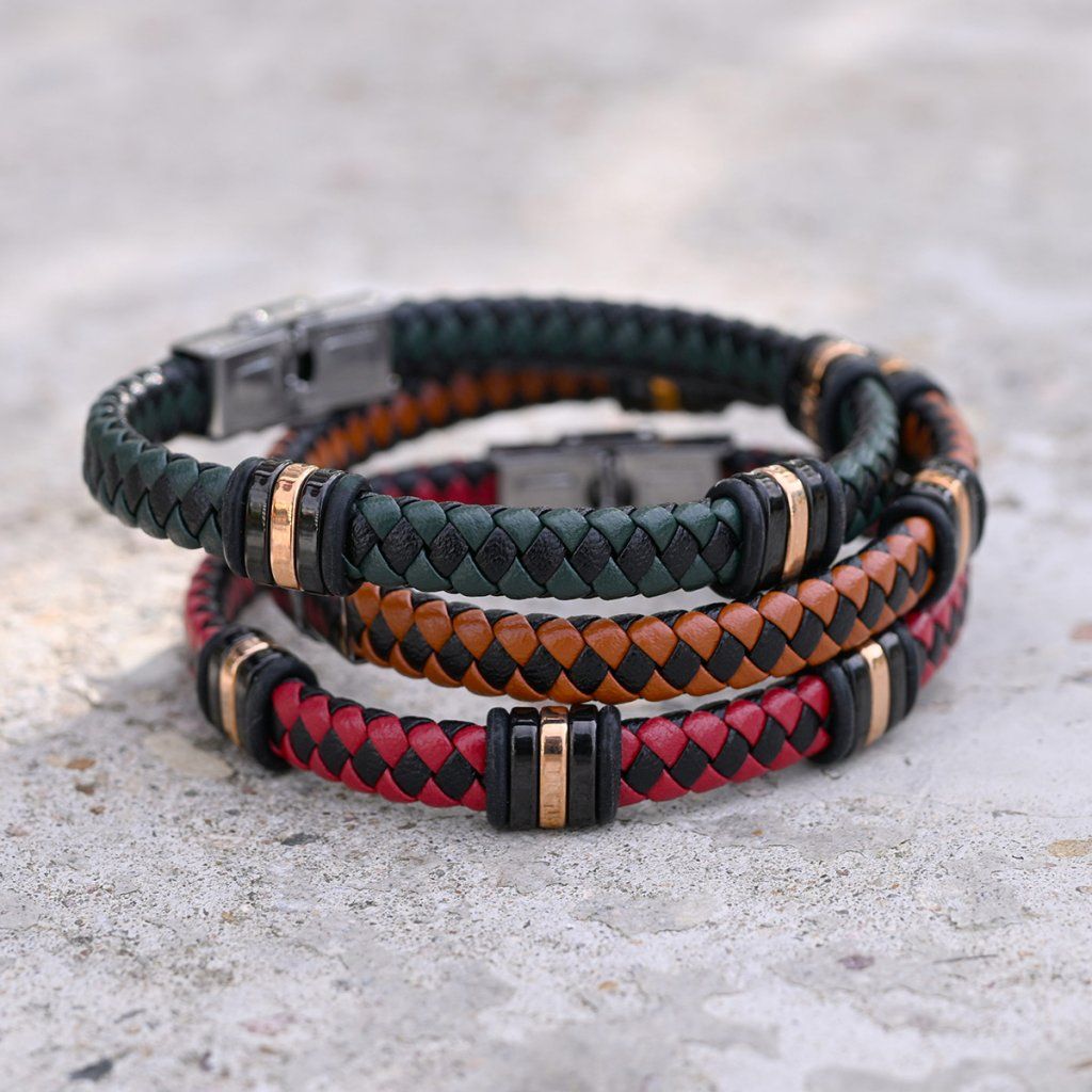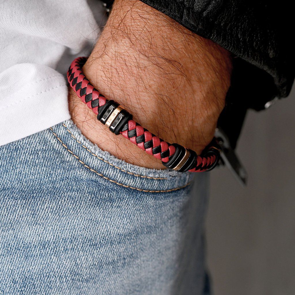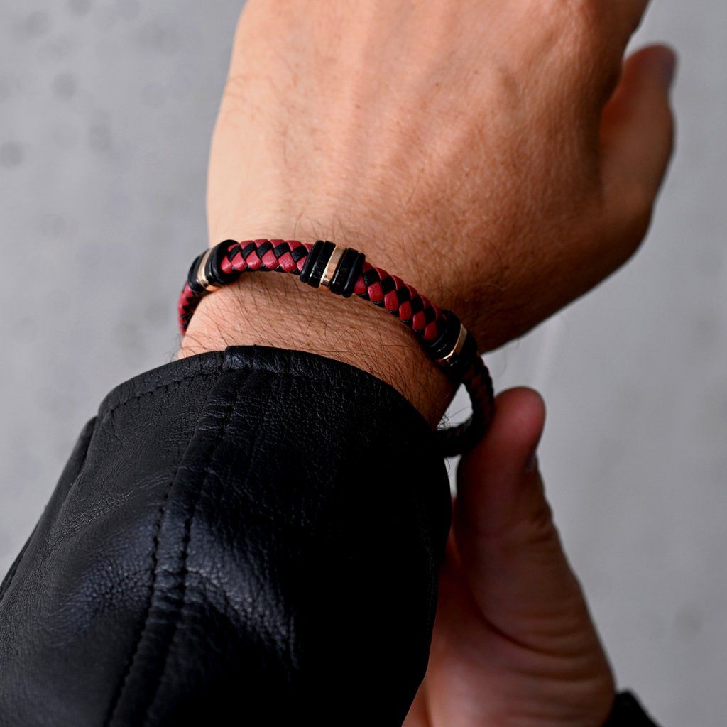 Náramek je vhodným dárkem pro elegantní muže a je tvořen zapletenými pásky z černé a červené PU kůže do kulatého průřezu.