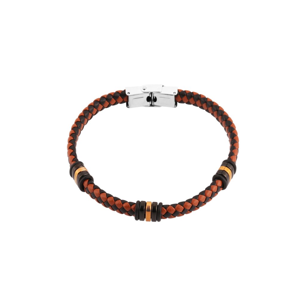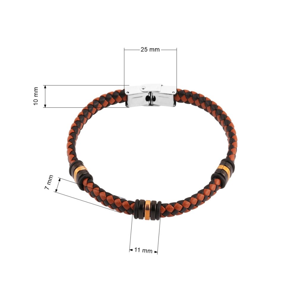 Náramek je vhodným dárkem pro elegantní muže a je tvořen zapletenými pásky z černé a světle hnědé PU kůže do kulatého průřezu.
