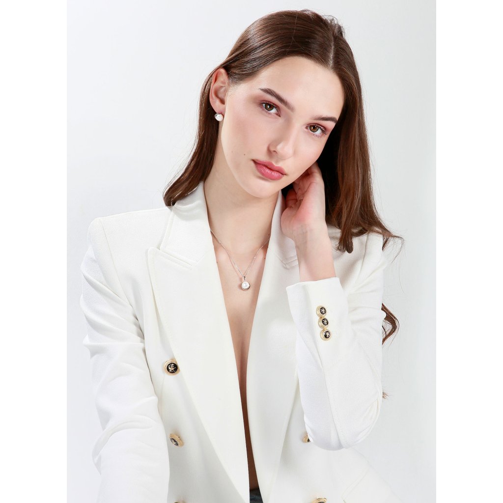 Souprava je zdobená bílými perlami o průměru 9 mm spadající do kategorie kvality AA. Luxusní perly doplňuje stříbro ryzosti 925/1000 včetně povrchové úpravy rhodiem. Vzhledem k tomu, že šperky neobsahují nikl, nemusíte se obávat žádné alergické reakce. Pro výrobu šperků využíváme materiály prvotřídní kvality. K soupravě je přiložen certifikát pravosti, který dokazuje pravost říčních perel.