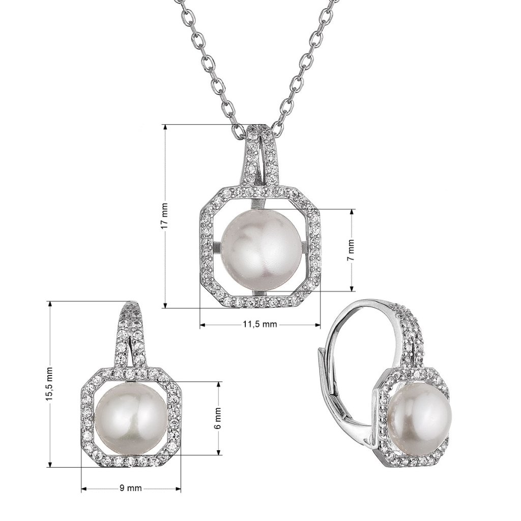 Perlová souprava s bílou říční perlou a zirkony čtverec 29083.1