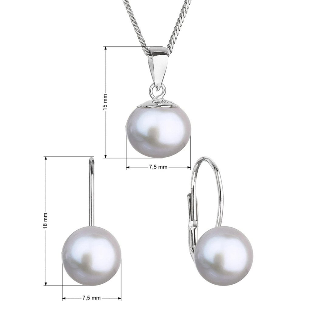 Vybíráte šperk pro každou příležitost? Vyzkoušejte jednoduchou perlovou soupravu.Souprava z šedých říčních perel obsahuje náušnice a přívěsek na stříbrném řetízku. Sladkovodní perly, kterými jsou šperky zdobeny, mají kvalitu AA a průměr 7,5 mm. Šperky jsou vyrobeny ze stříbra o ryzosti 925/1000 včetně povrchové úpravy rhodiem. Soupravu se nemusejí bát pořídit ani alergici, jelikož šperky neobsahují žádný přídavek niklu. Náušnice zapnete na klapku, která je spolehlivě ochrání proti nechtěné ztrátě.