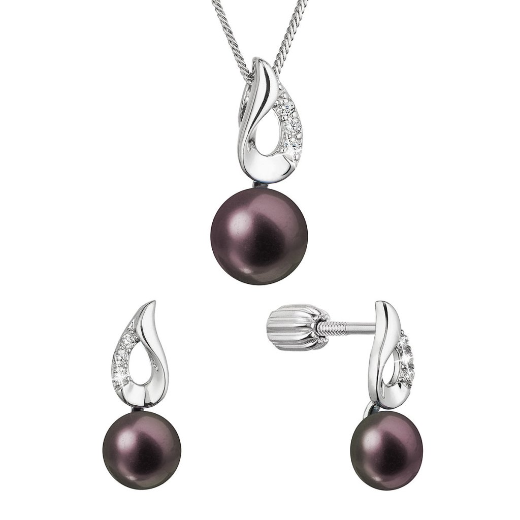 Perlová souprava se zirkony a tmavou říční perlou 29061.3B peacock