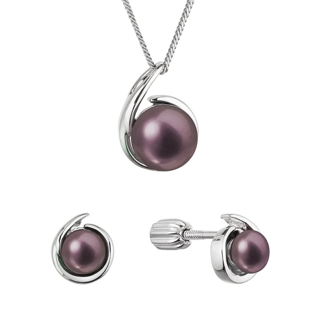 Souprava z tmavých říčních perel obsahuje slušivé náušnice a přívěšek na stříbrném řetízku. Peacock sladkovodní perly, kterými jsou šperky zdobeny, mají velmi vysoký lesk, jelikož spadají do kategorie kvality AAA. Barva perel peacock je měnící se z tmavě modrého až fialového odstínu do zeleného až zlatého. Je těžké tuto barvu perliček přesně definovat, proto je nazvána podle páva, vždy jiná, podle úhlu pohledu a dopadu světla.