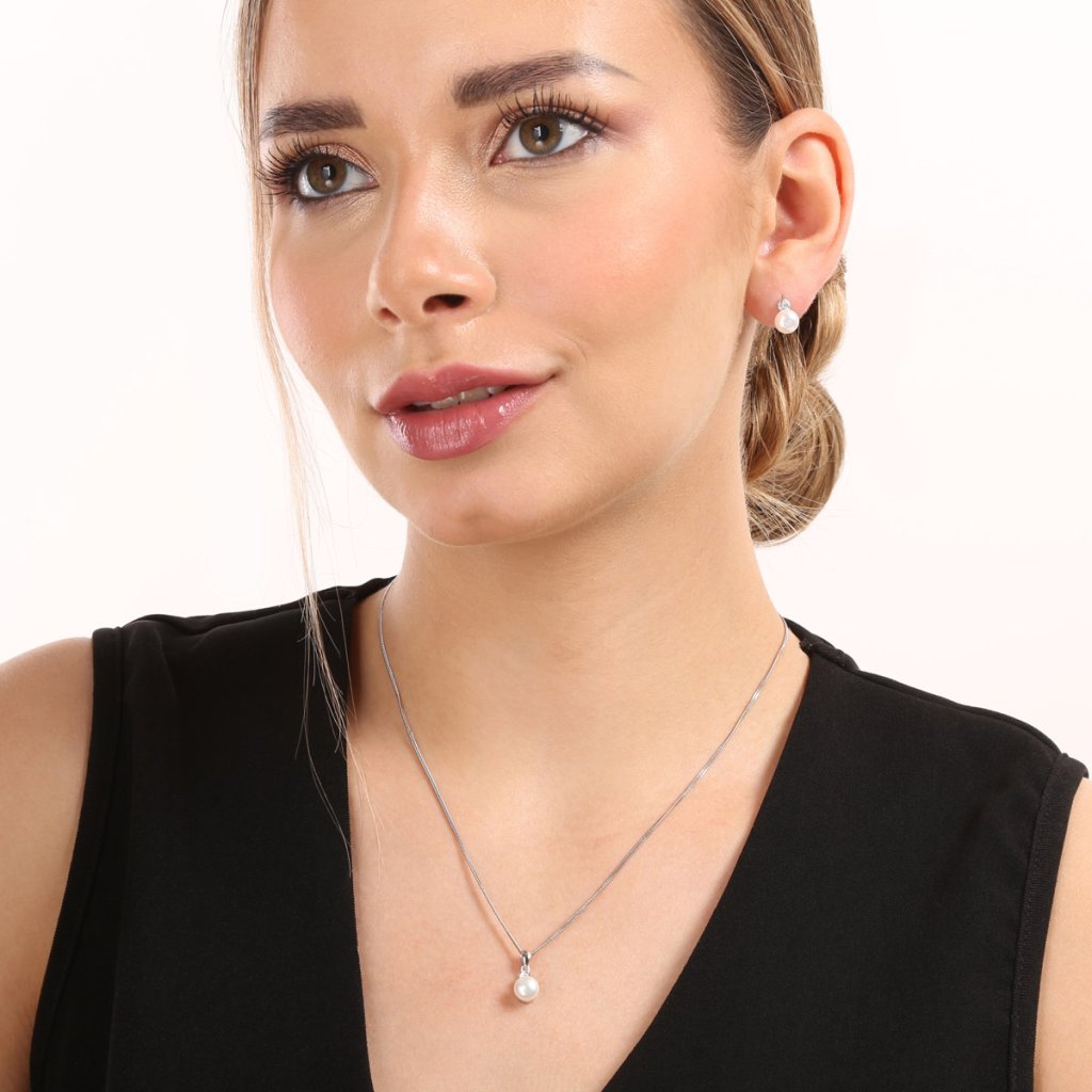 Přívěšek i náušnice vyrobené ze stříbra o ryzosti 925/1000 včetně povrchové úpravy rhodiem jsou doplněny bílou perlou té nejvyšší kvality AAA a dozdobeny jemným třpytivým zirkonem. Zirkony jsou ve tvaru malého roztomilého srdíčka. Šperky mohou bez obav nosit i alergici, neobsahují totiž žádný přídavek niklu. Náušnice mají zapínání na balónek.