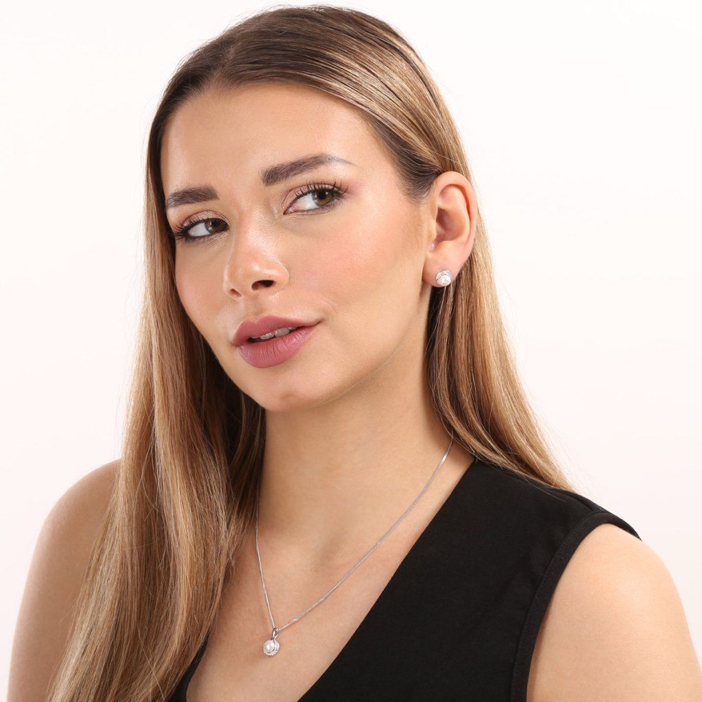Sada šperků obsahuje kulaté náušnice typu pecky zdobené velkou bílou říční perlou a náhrdelník s perlovým přívěškem. Šperky jsou vyrobeny ze stříbra o ryzosti 925/1000 včetně povrchové úpravy rhodiem a vzhledem k tomu, že neobsahují nikl, jsou vhodné i pro alergiky. Perly, kterými jsou šperky zdobeny, spadají do kategorie nejvyšší kvality AAA. Náušnice i přívěšek se tak mohou pochlubit velmi vysokým leskem. Zapínání náušnic je na balónek.