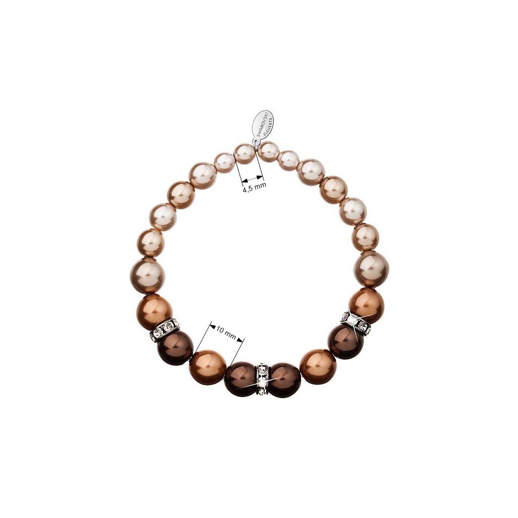 Ozdobte své zápěstí slušivým náramkem z hnědých a bronzových perel!Náramek 33016.3 je navlečen z různě velkých hnědých a bronzových kulatých perel, mezi něž jsou vloženy tři kulaté rondelky osázené Swarovski krystaly. Krystaly jsou v bílé barvě. Na rondelky byl použit bižuterní kov, který prošel povrchovou úpravou rhodiem. Rhodium šperk chrání proti zčernání, zežloutnutí nebo poškrábání. Jelikož náramek neobsahuje přídavek niklu, mohou jej bez obav z alergické reakce nosit i alergici.