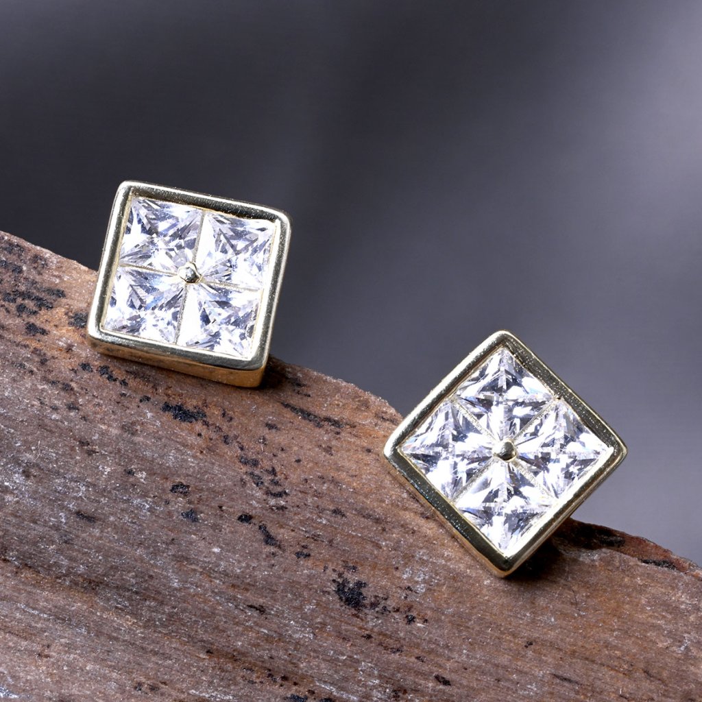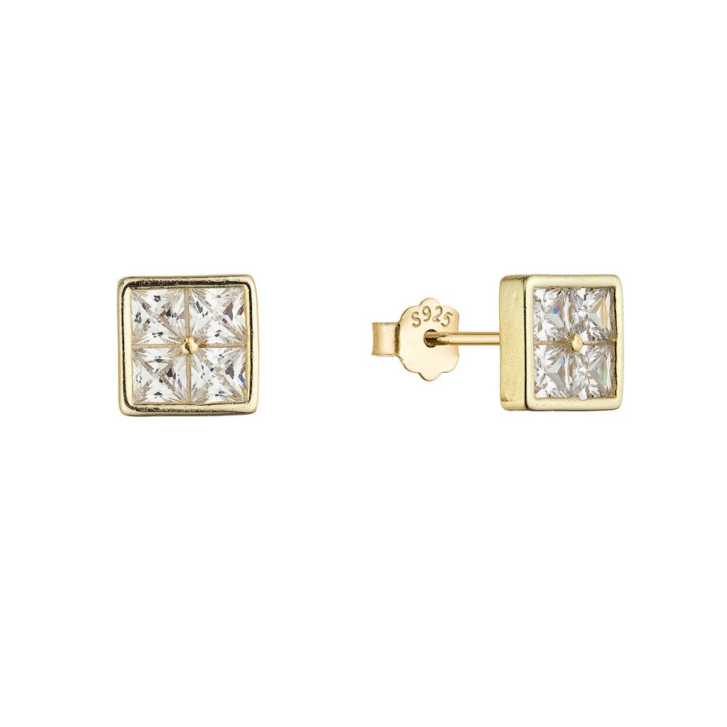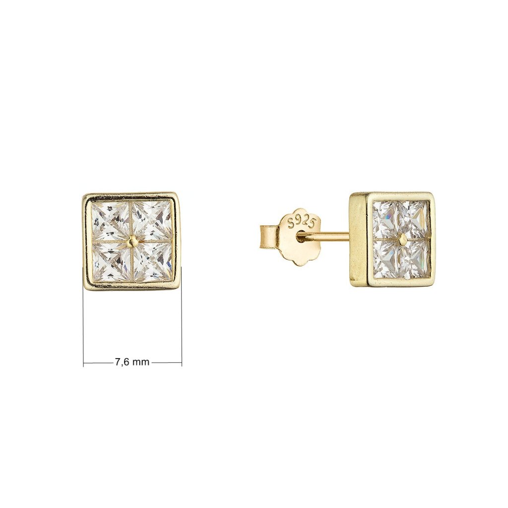 Pozlacené náušnice čtverečky se zirkony 11748.1