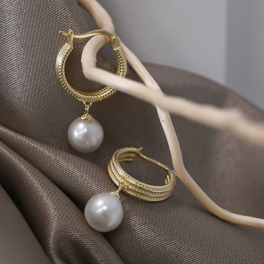 Pozlacené náušnice kruhy se zavěšenou říční perlou 21127.1