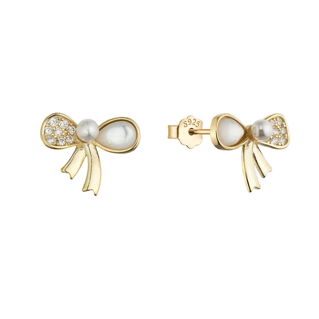 Pozlacené náušnice perleťové mašličky 11802.1