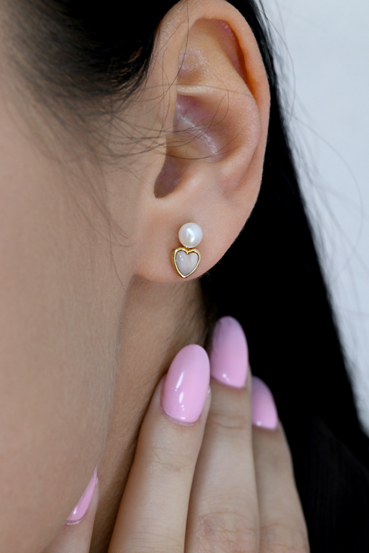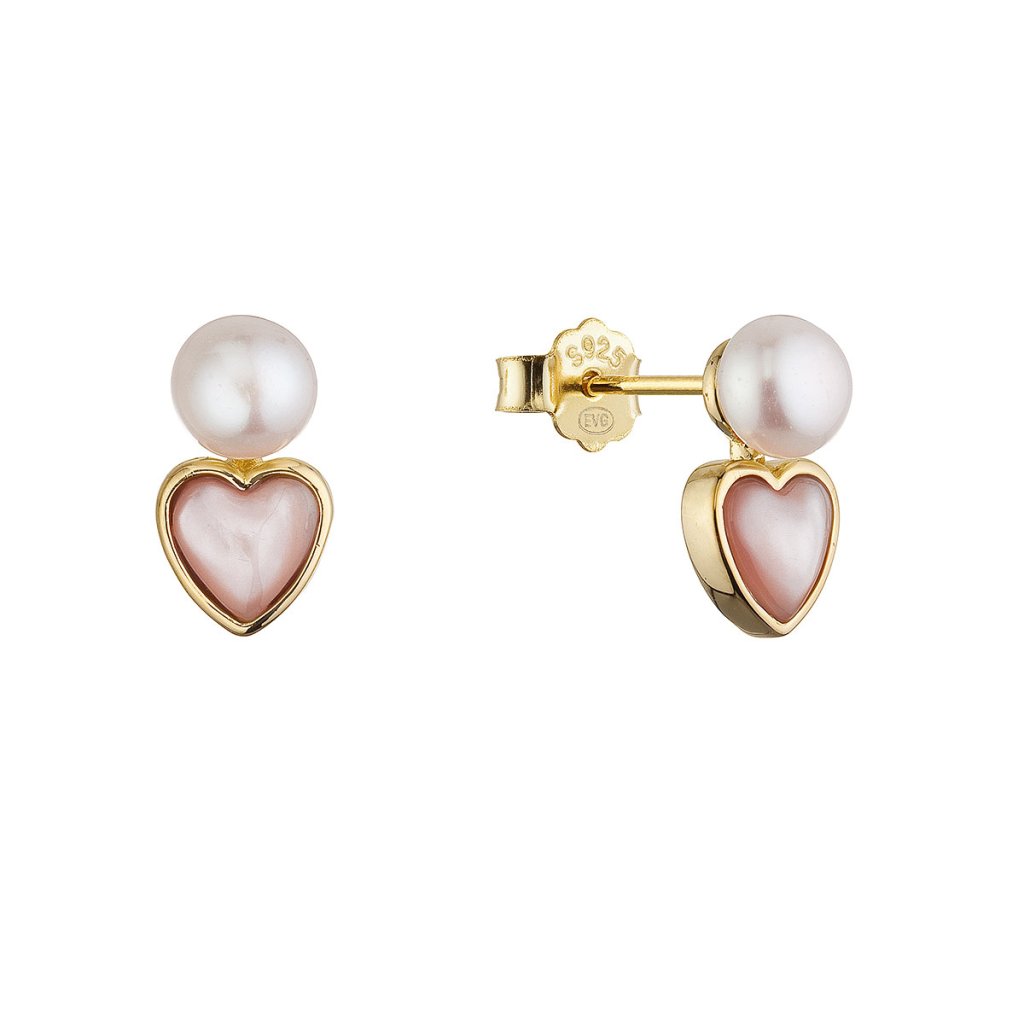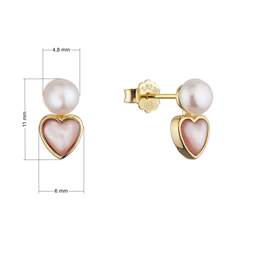 Pozlacené náušnice s říční perlou srdíčka 21119.1