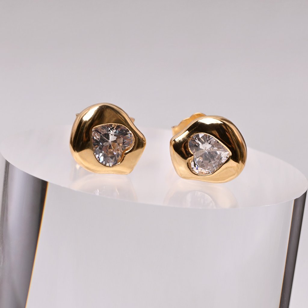 Pozlacené náušnice se zirkonovým srdíčkem 11790.1