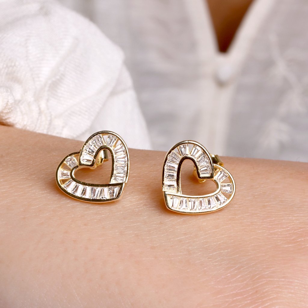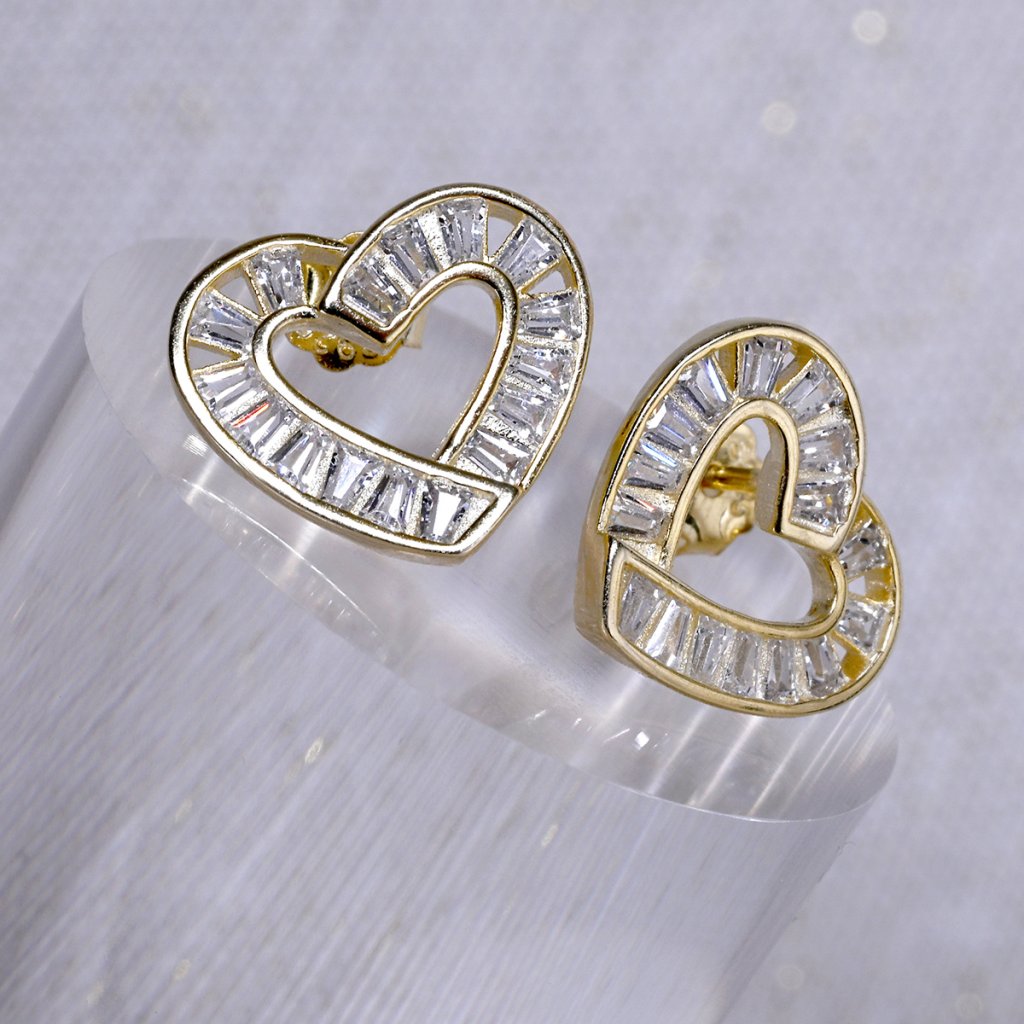 Pozlacené náušnice srdíčka se zirkony 11749.1
