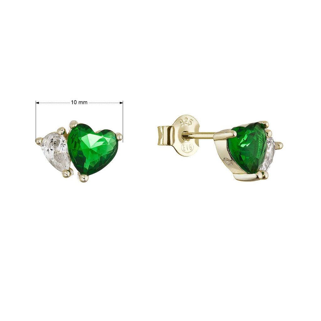 Pozlacené náušnice srdíčka zelená 11791.3
