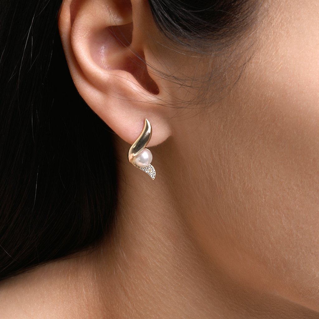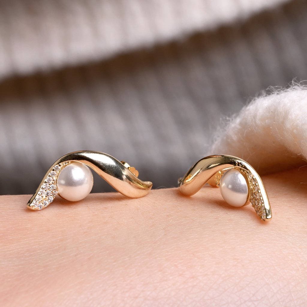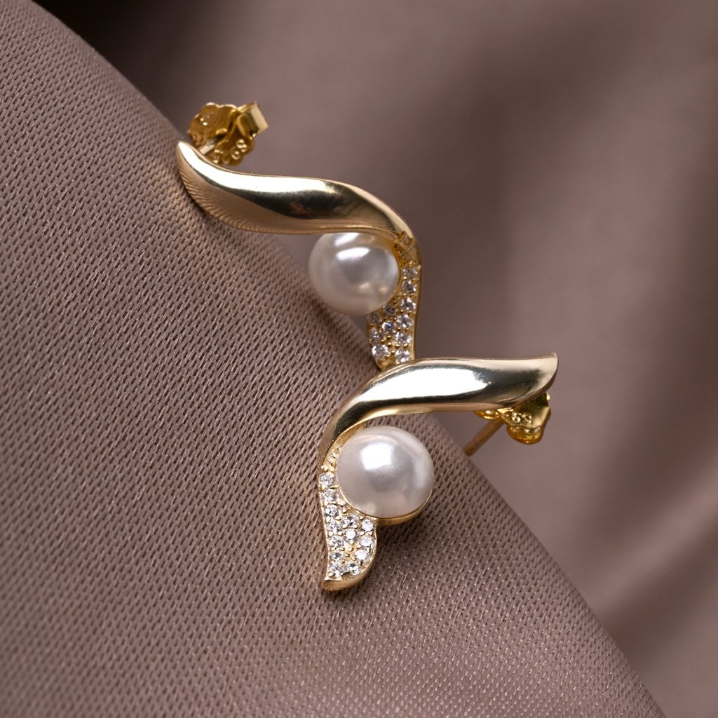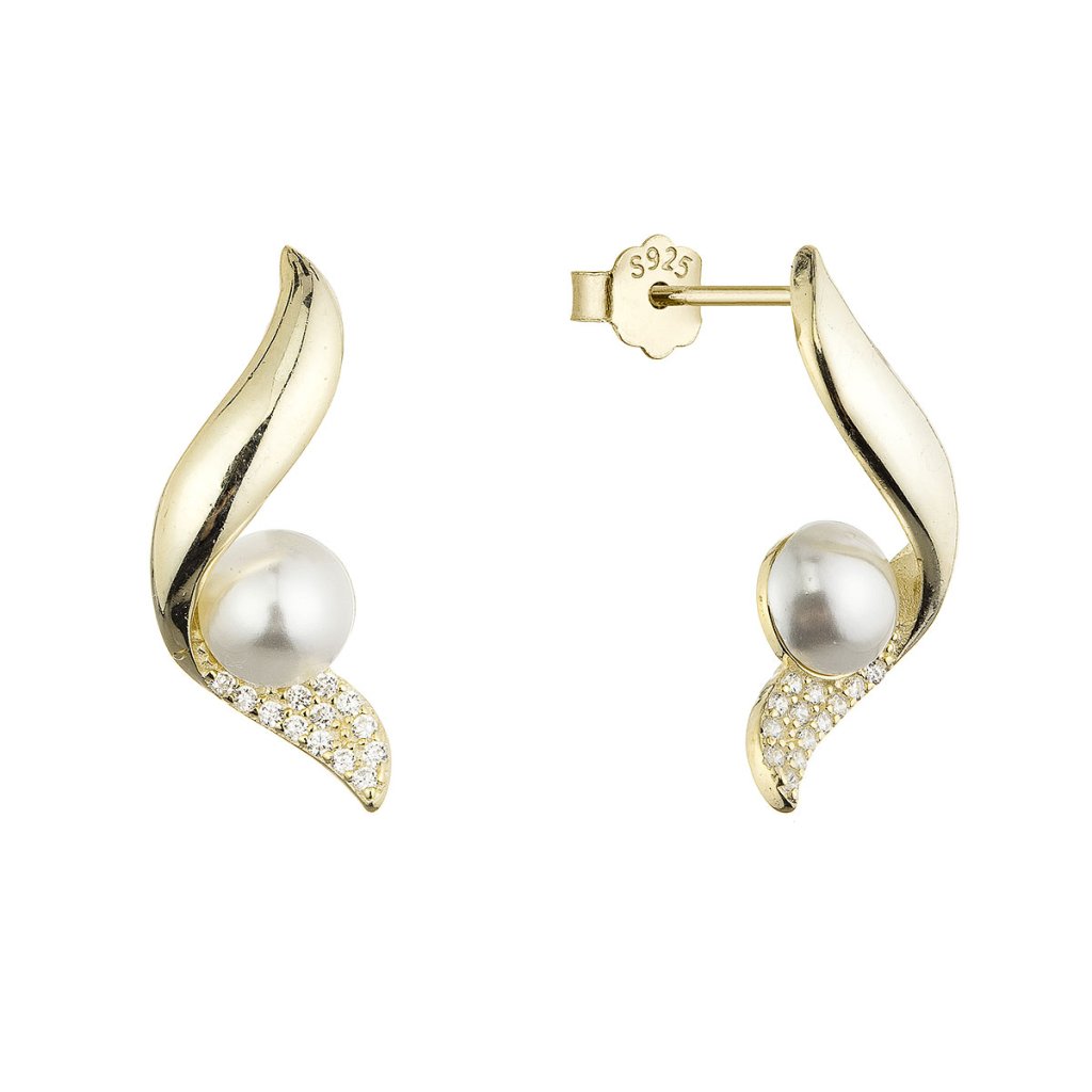 Pozlacené náušnice vlnky s perličkou 11806.1