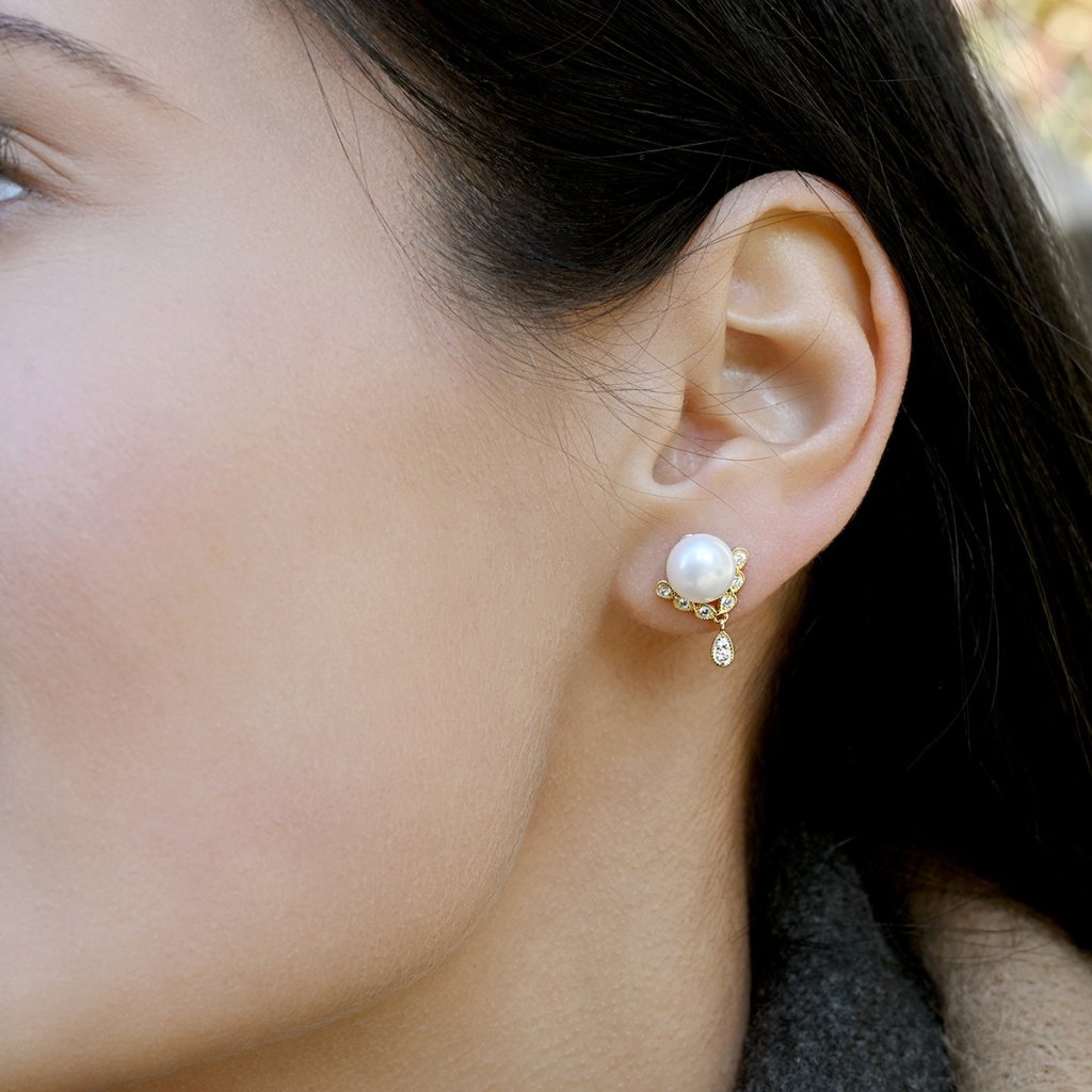Pozlacené ozdobné náušnice s říční perlou 21122.1