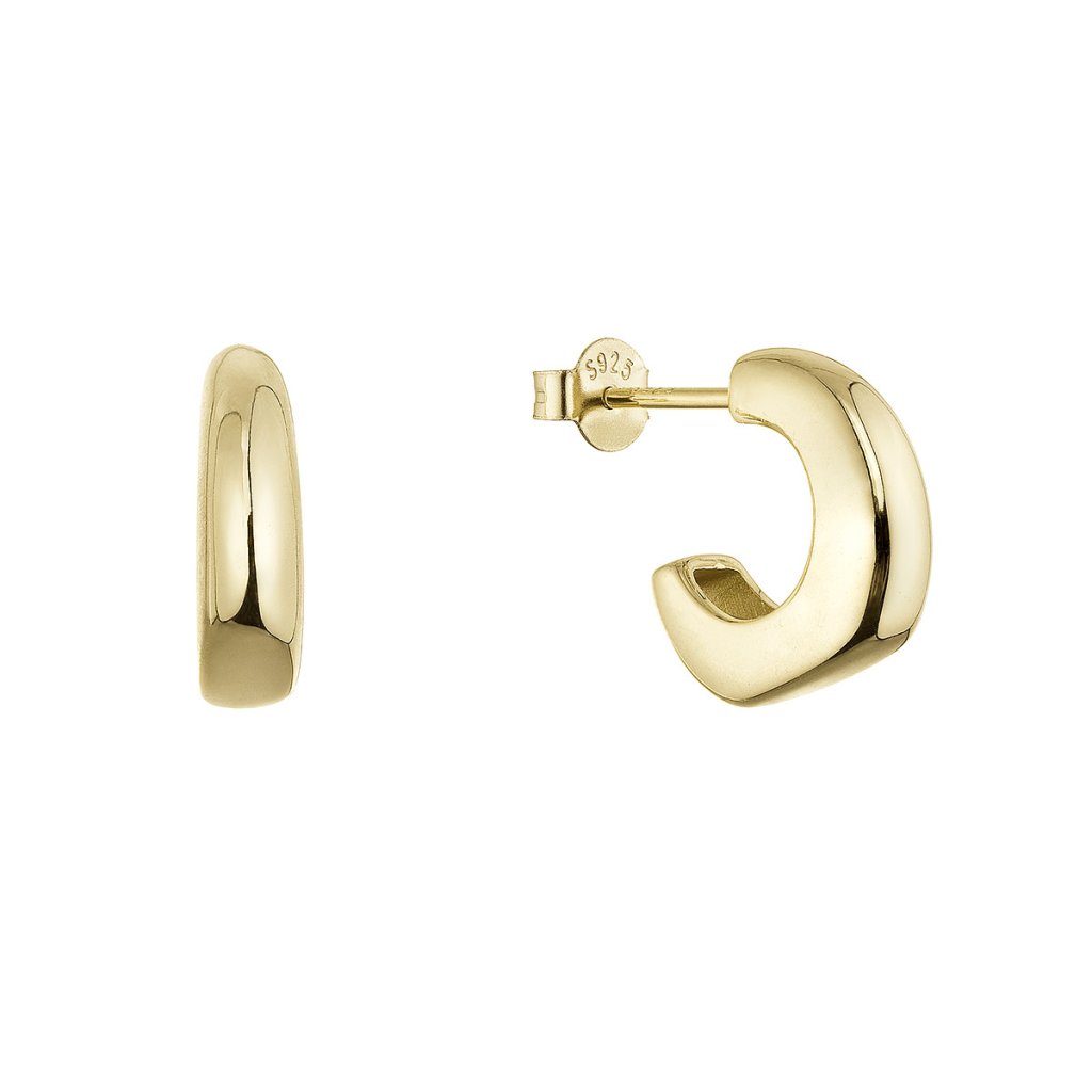 Jednoduchost, která zaujme na první pohled. Tyto pozlacené stříbrné náušnice ve tvaru nedokončeného kruhu v sobě spojují moderní minimalismus a jemnou hravost. Hladký, mírně zvlněný povrch a zaoblené linie dodávají šperku živost a lehký organický dojem – jako zlatá vlnka, která se jemně stáčí kolem ušního lalůčku.
