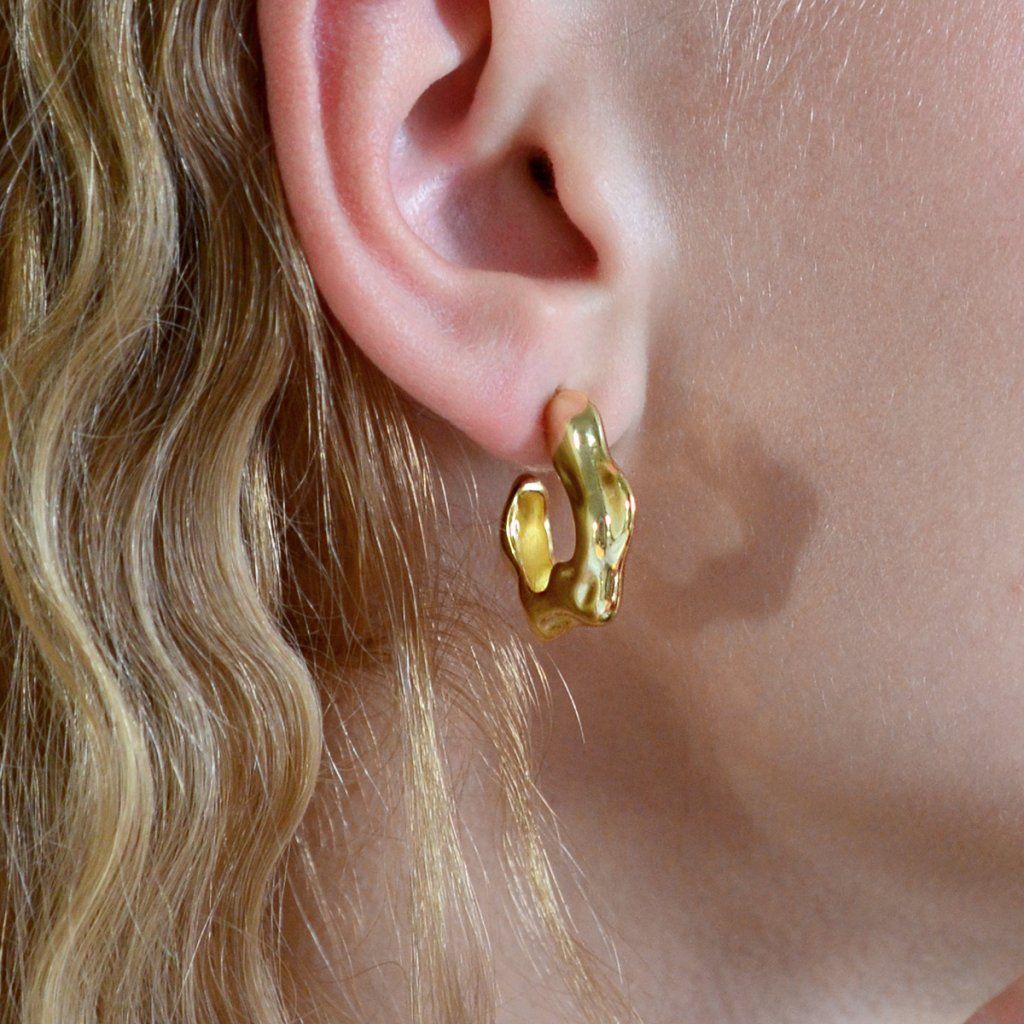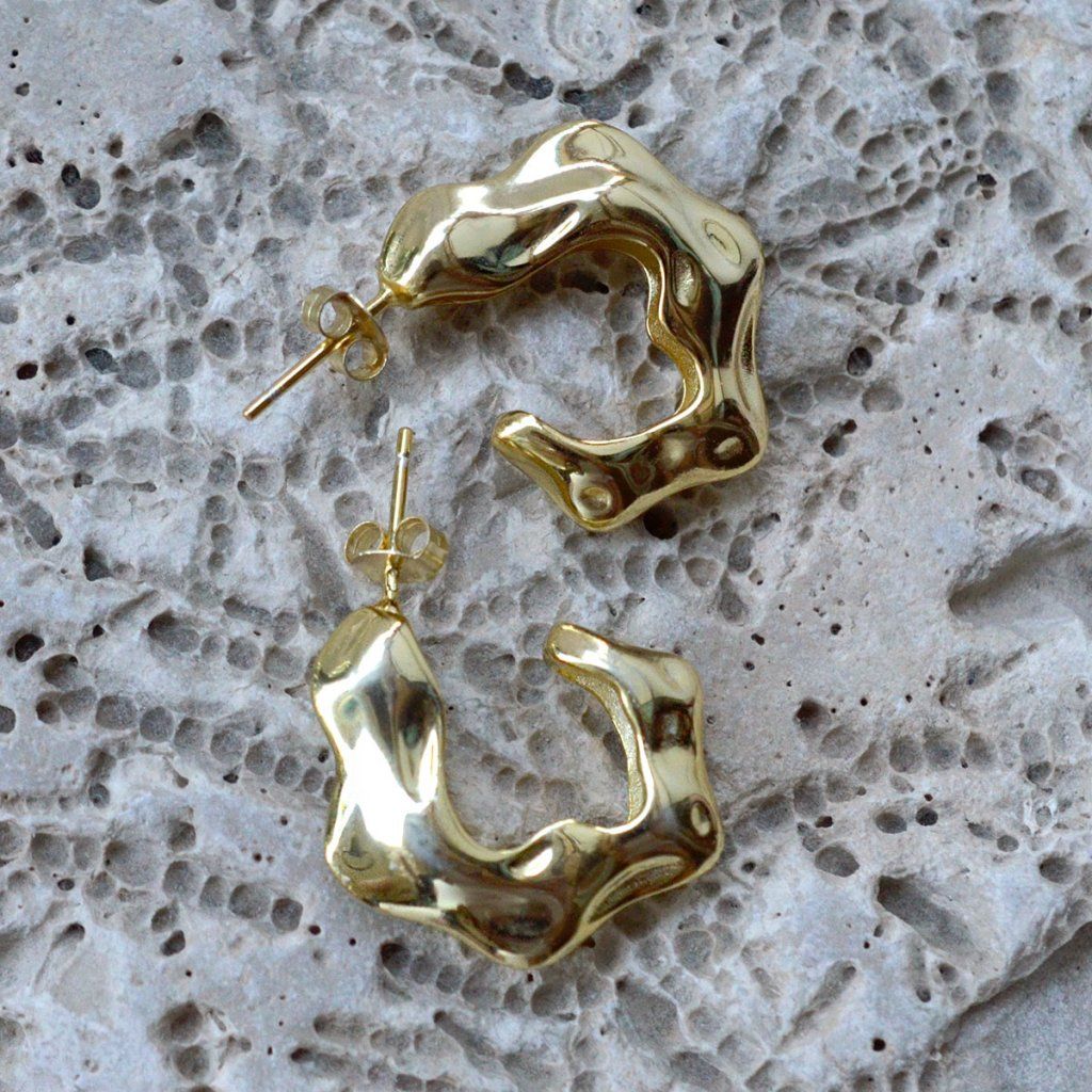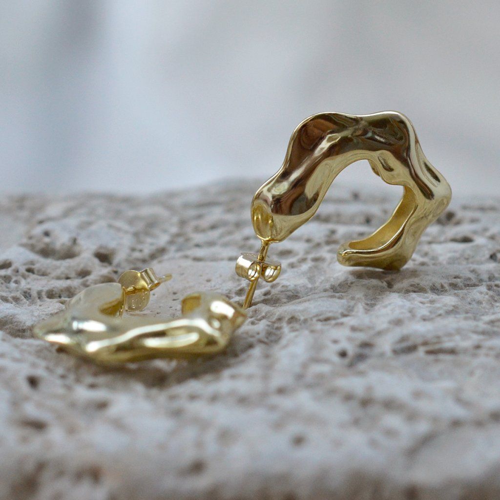 Pozlacené stříbrné náušnice nepravidelné kruhy 61110