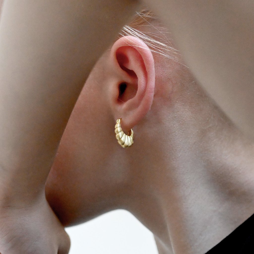 Zajímavě řešené náušnice pro ženy upoutají svým originálním vějířovitým designem, který připomíná jemně tvarované kruhy s plastickým efektem. Elegantní matný povrch ve zlatém odstínu dodává šperku luxusní vzhled.