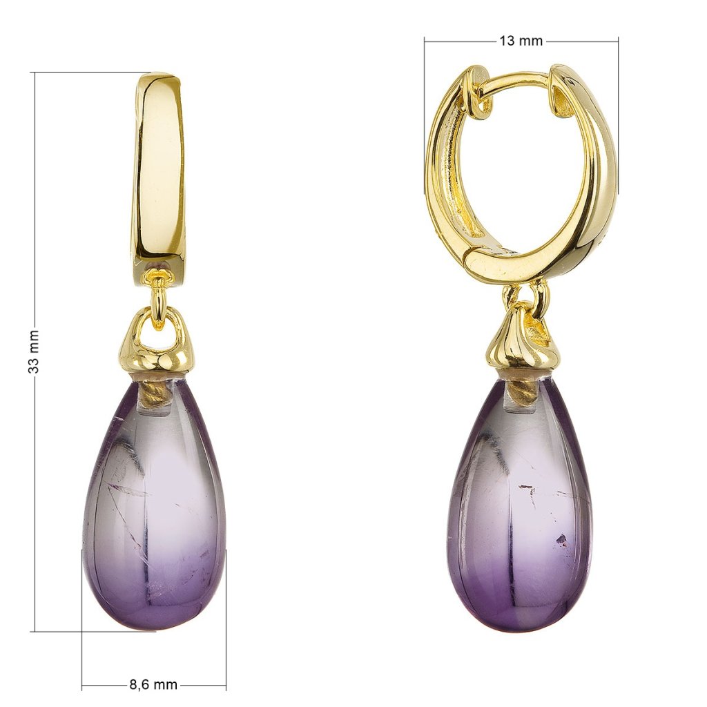 Pozlacené visací náušnice kapky s ametystem 11733.3