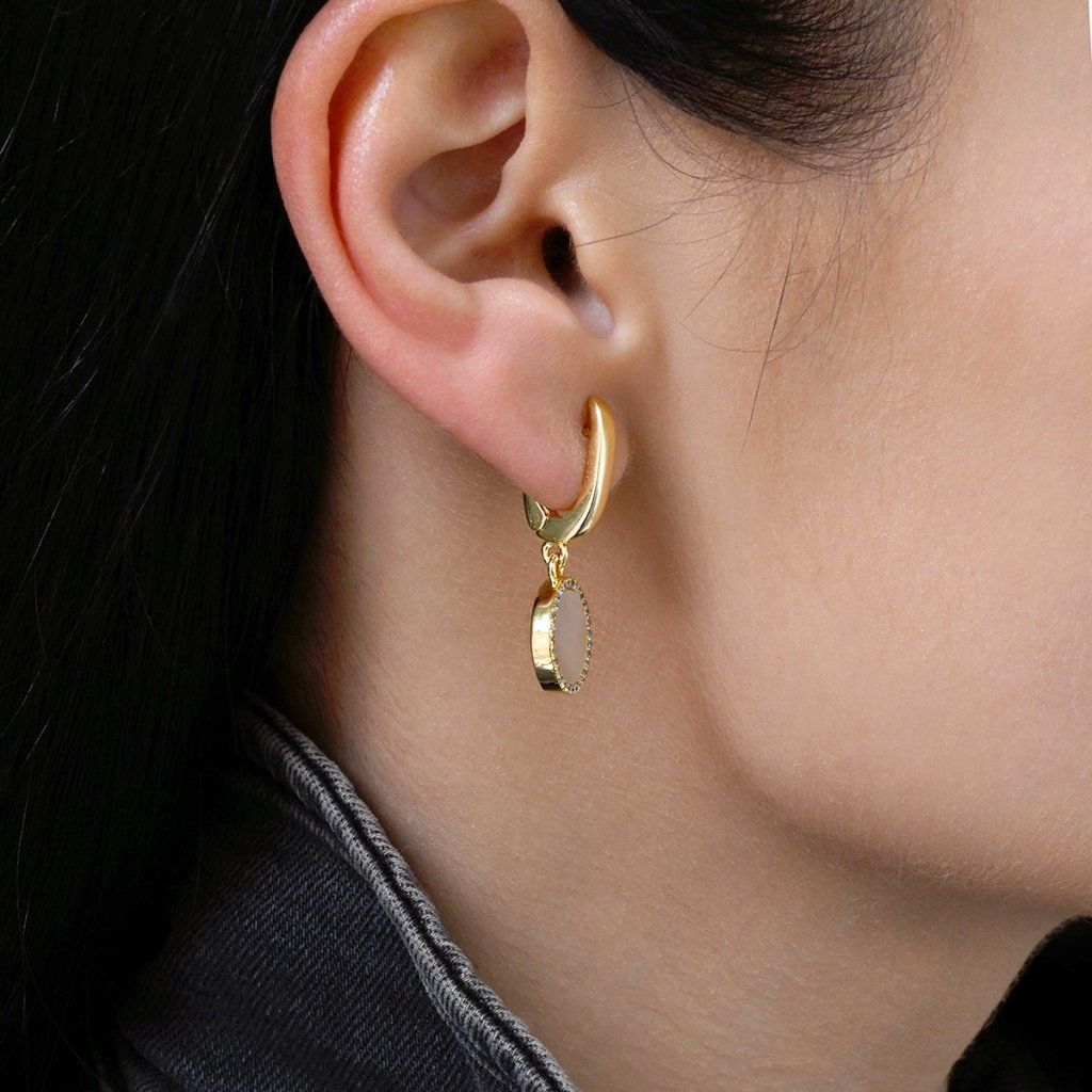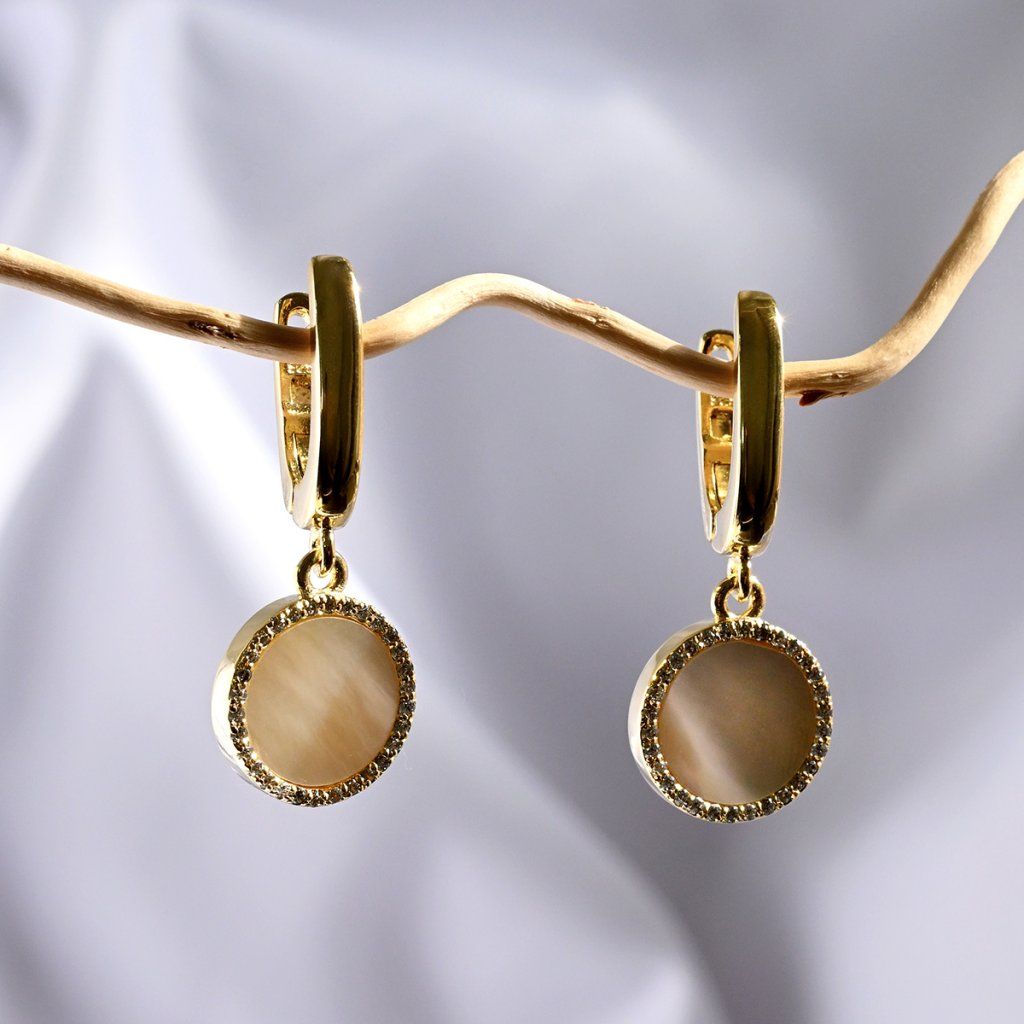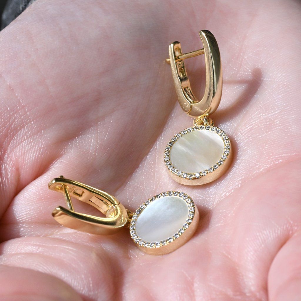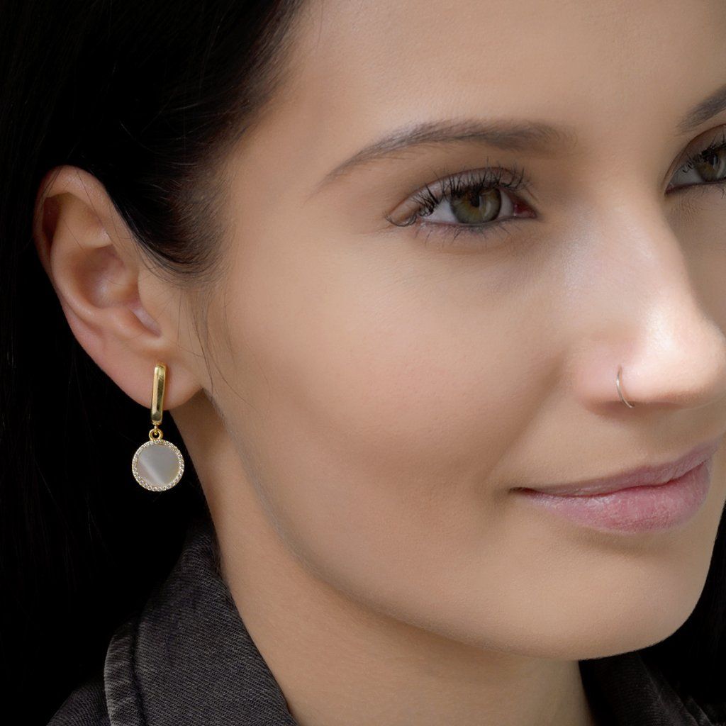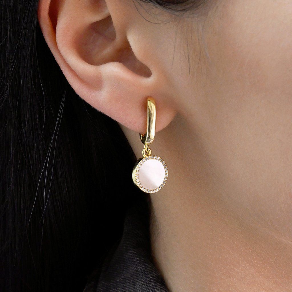 Pozlacené visací náušnice s bílou perletí 11734.1