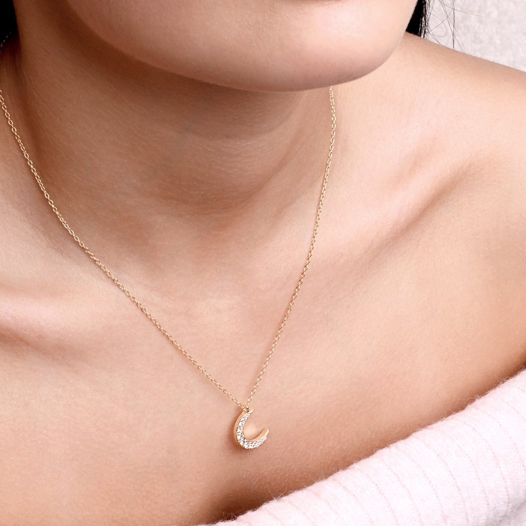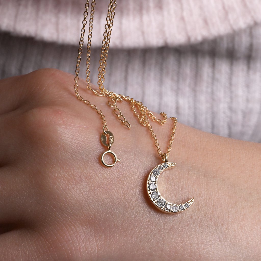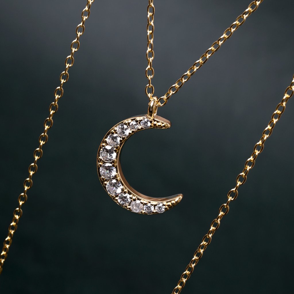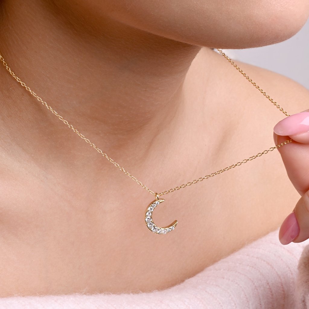 Pozlacený náhrdelník půlměsíc se zirkony 12176.1