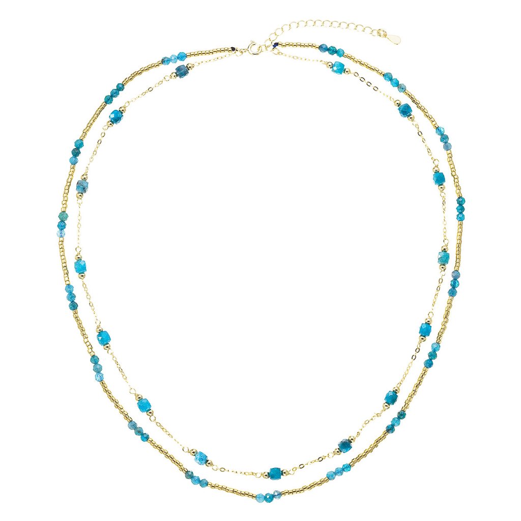 Okouzlující jemný dvouřadý náhrdelník s drobnými přírodními kamínky apatity působí lehce a elegantně.